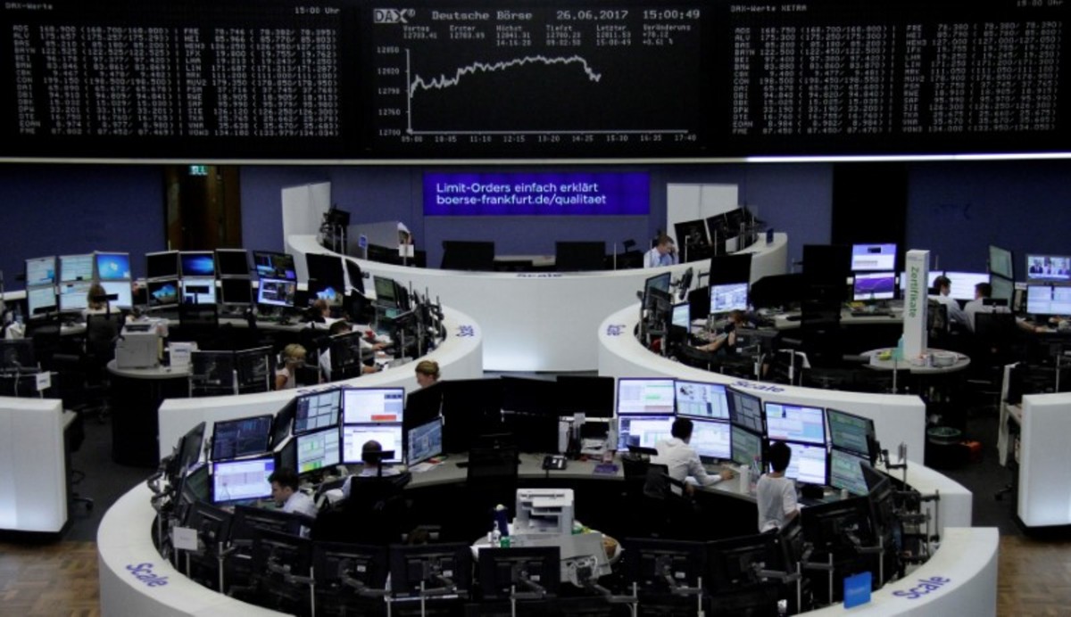 NEW YORK (Reuters) - Nestle's jump to a record high boosted European stocks and helped buoy a global index on Monday, while the dollar was close to recent lows and the U.S. yield curve flattened after soft capital goods data.