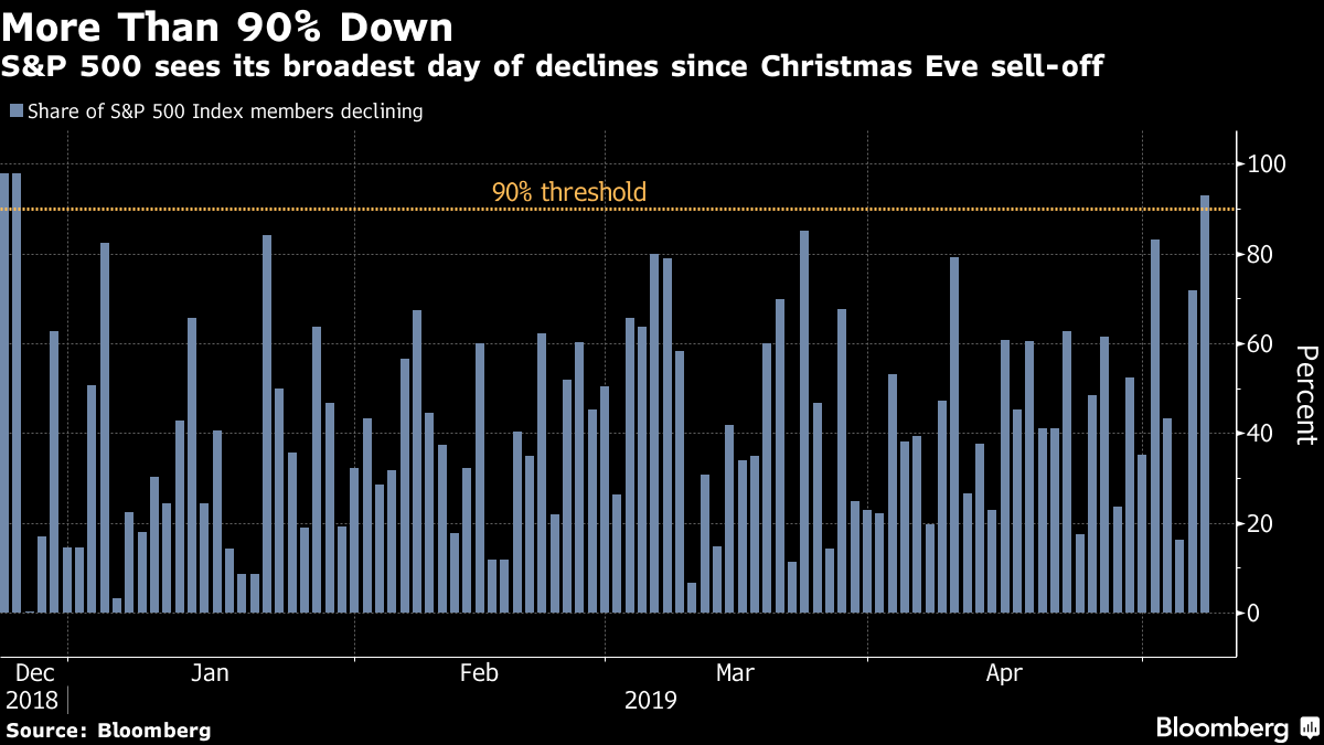 An escalation of Trump’s rhetoric on trade in the past few days appears to have caught global equity markets off-guard. Many had been testing record highs, seemingly priced to perfection on the assumption a deal between the U.S. and China would get done. The likes of JPMorgan boss Jamie Dimon still put the odds of that at 80 percent, and the S&P 500 has only fallen to levels seen a month ago.