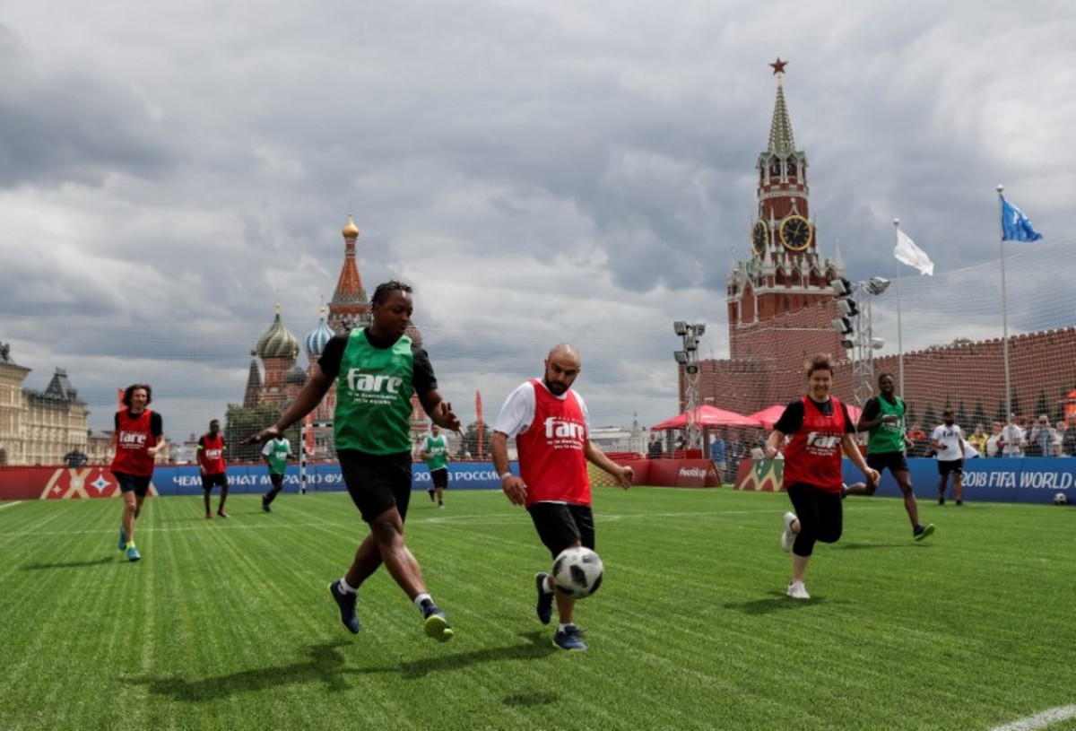 MOSCOW (Reuters) - Migrants from Africa and Asia staged their own version of the World Cup in Moscow on Tuesday, playing soccer matches in Red Square in an event held to highlight challenges faced by refugees in Russia.