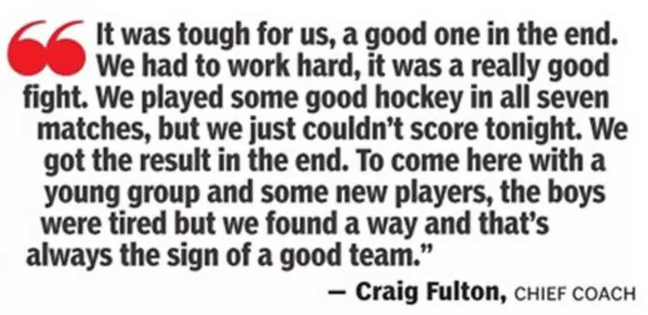 The Olympic bronze medallists had 26 goals in six matches in the run-up to the title contest but were tied down by man-to-man marking from the home side and superb goalkeeping by Weihao Wang. Eventually, unheralded Jugraj Singh turned hero for the defending champions, breaking through a resolute Chinese defence to score the only goal of the contest in the 51st minute.