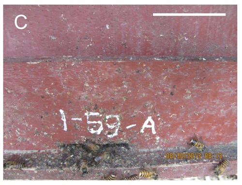 The bees responded by sticking more feces all over the hive like horrible Christmas lights. The colonies that didn't get sprayed didn't decorate with dung as much, leading the scientists to believe the honeybees were specifically reacting to the threat of their predators.