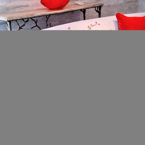 The same design element appears in relief on Ambella Home's appropriately named Cherry Blossom cabinet, which has a metal base and bi-folding doors, and draped across the curved back of Palm Beach Florida's Cee Zee sofa, which was inspired by vintage 1950s pieces.