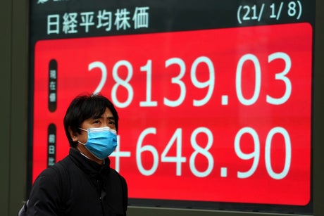 A new state of emergency in the Tokyo region to combat surging coronavirus cases did little to dampen market optimism. The benchmark Nikkei 225 surged 2.4% to close at 28,139.03, its highest finish in more than 30 years.
