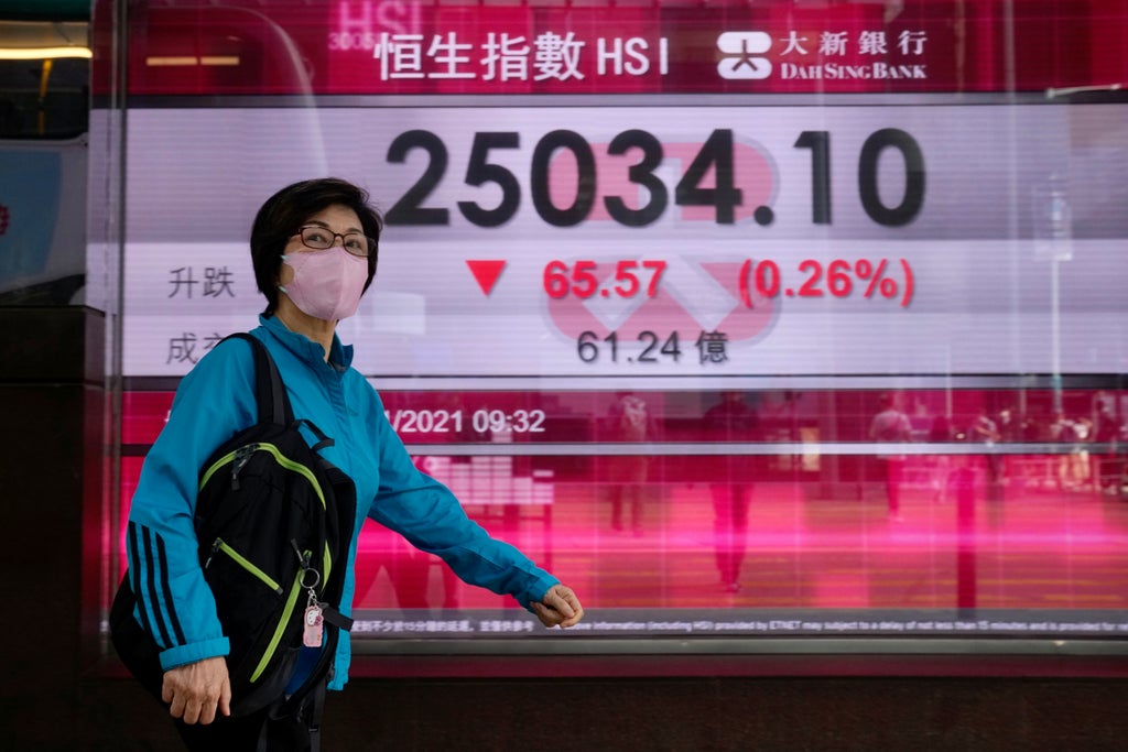 Shares were mostly lower in Asia on Wednesday, weighed down by concerns over disrupted supply chains and shipping, despite the Dow Jones Industrial Average’s first close above 36,000 points.