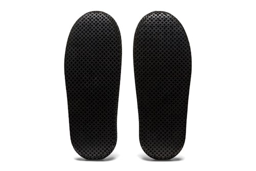 Thanks to its 3D-printed build, the entire shoe is decorated with undulating open mesh perforations that make the slide lighter (as well as something to avoid if you suffer from trypophobia). Design accents include a diagonal ridge across the sandal’s thick strap alongside a perforated Asics motif on the shoe’s lateral side. An Asics logo hits the back of the heel.