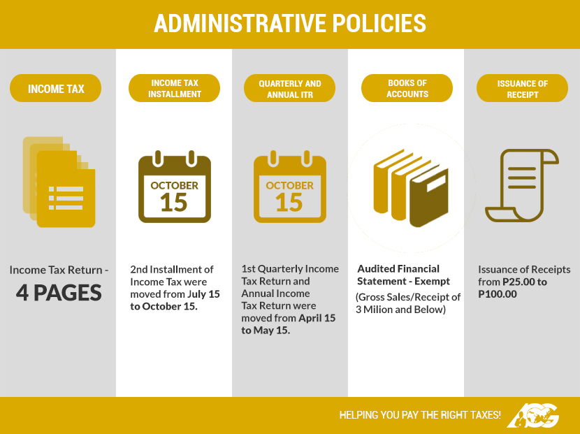 Under the TRAIN law, there are administrative reforms included which will simplify compliance for taxpayers: