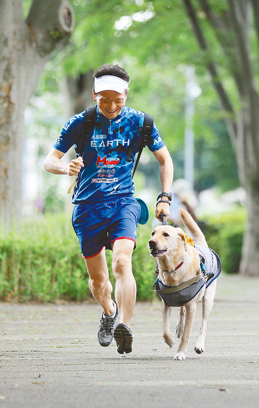 Ryu Nakazawa, 38, who signed a contract as an athlete with a foreign-affiliated medical company, is aiming to participate in the Tokyo Paralympics' triathlon, along with his guide dog, Deneb. He began suffering from fading vision at age 27 due to glaucoma. Since 2014, he has lived in Nishitokyo, Tokyo, with Deneb, who was trained at the Japan Guide Dog Association.