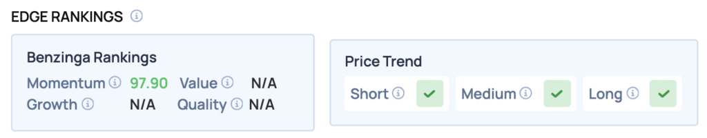 Benzinga Edge Rankings: This powerful rally is reflected in the stock’s Benzinga Edge rankings, which assign it a strong Momentum score of 97.90.