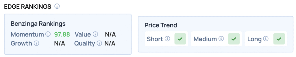 Benzinga Edge Rankings: Highlighting the stock’s powerful upward trajectory, Benzinga Edge proprietary rankings assign ASTS a near-perfect Momentum score of 97.88.