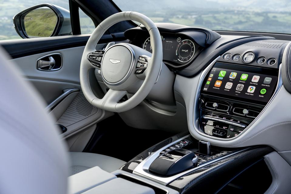 Aiding here is Aston Martin’s first air suspension system with height adjustable by up to 95mm from its lowest to its highest, off-road capable setting, and a 48V active antiroll bar system. Double-wishbones are up front, with a multi-link axle at the back. All of this combines to create a car that retains enough of Aston’s sporting DNA while also being a comfortable long-distance cruiser.
