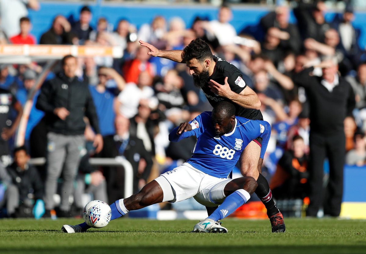 Soccer Football - Championship - Birmingham City vs Aston Villa - St Andrew's, Birmingham, Britain - October 29, 2017 Birmingham City's Cheick Ndoye in action with Aston Villa's Mile Jedinak Action Images/Matthew Childs