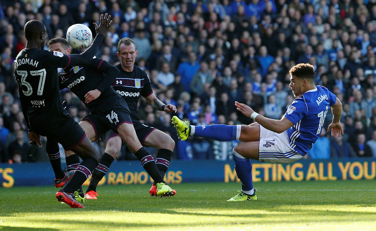 Soccer Football - Championship - Birmingham City vs Aston Villa - St Andrew's, Birmingham, Britain - October 29, 2017 Che Adams of Birmingham City shoots at goal Action Images/Ed Sykes