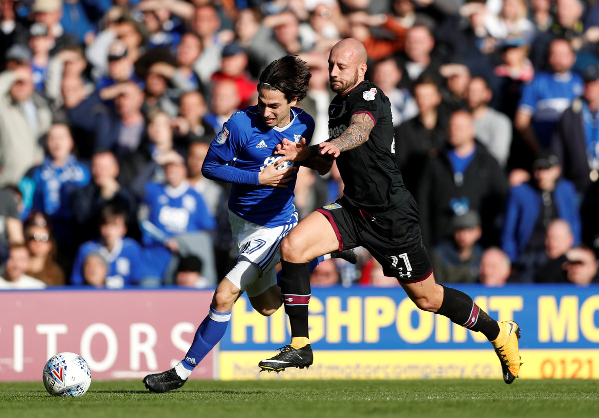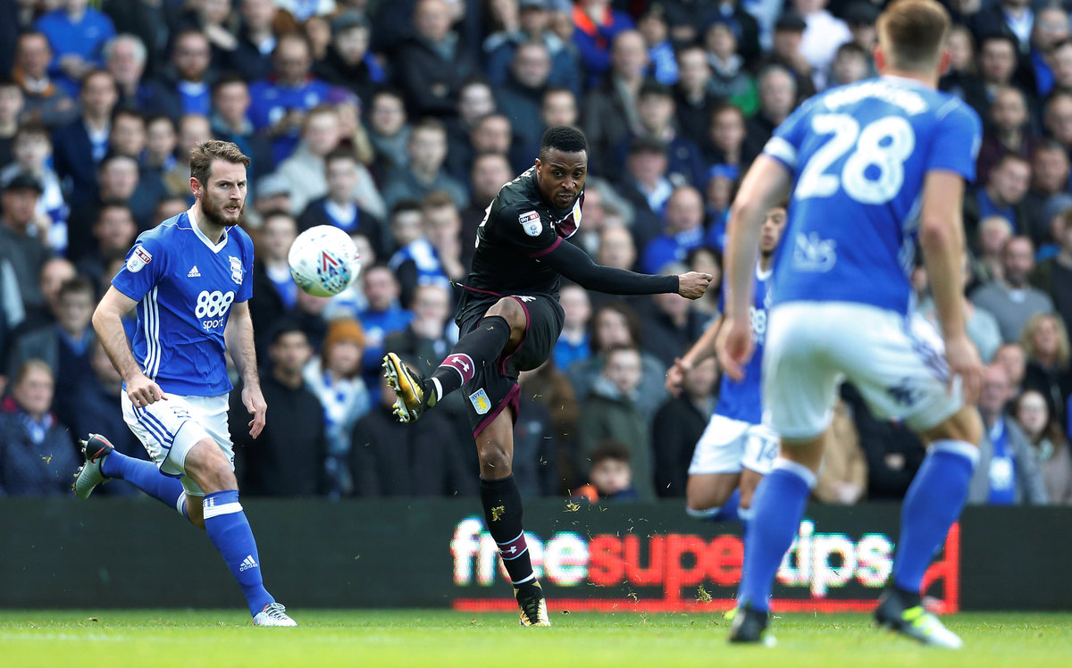 Soccer Football - Championship - Birmingham City vs Aston Villa - St Andrew's, Birmingham, Britain - October 29, 2017 Jota of Birmingham City misses a chance to score Action Images/Ed Sykes Soccer Football - Championship - Birmingham City vs Aston Villa - St Andrew's, Birmingham, Britain - October 29, 2017 Jonathan Kodjia of Aston Villa shoots at goal Action Images/Ed Sykes Soccer Football - Championship - Birmingham City vs Aston Villa - St Andrew's, Birmingham, Britain - October 29, 2017 Birmingham City's Jota in action with Aston Villa's Alan Hutton Action Images/Matthew Childs