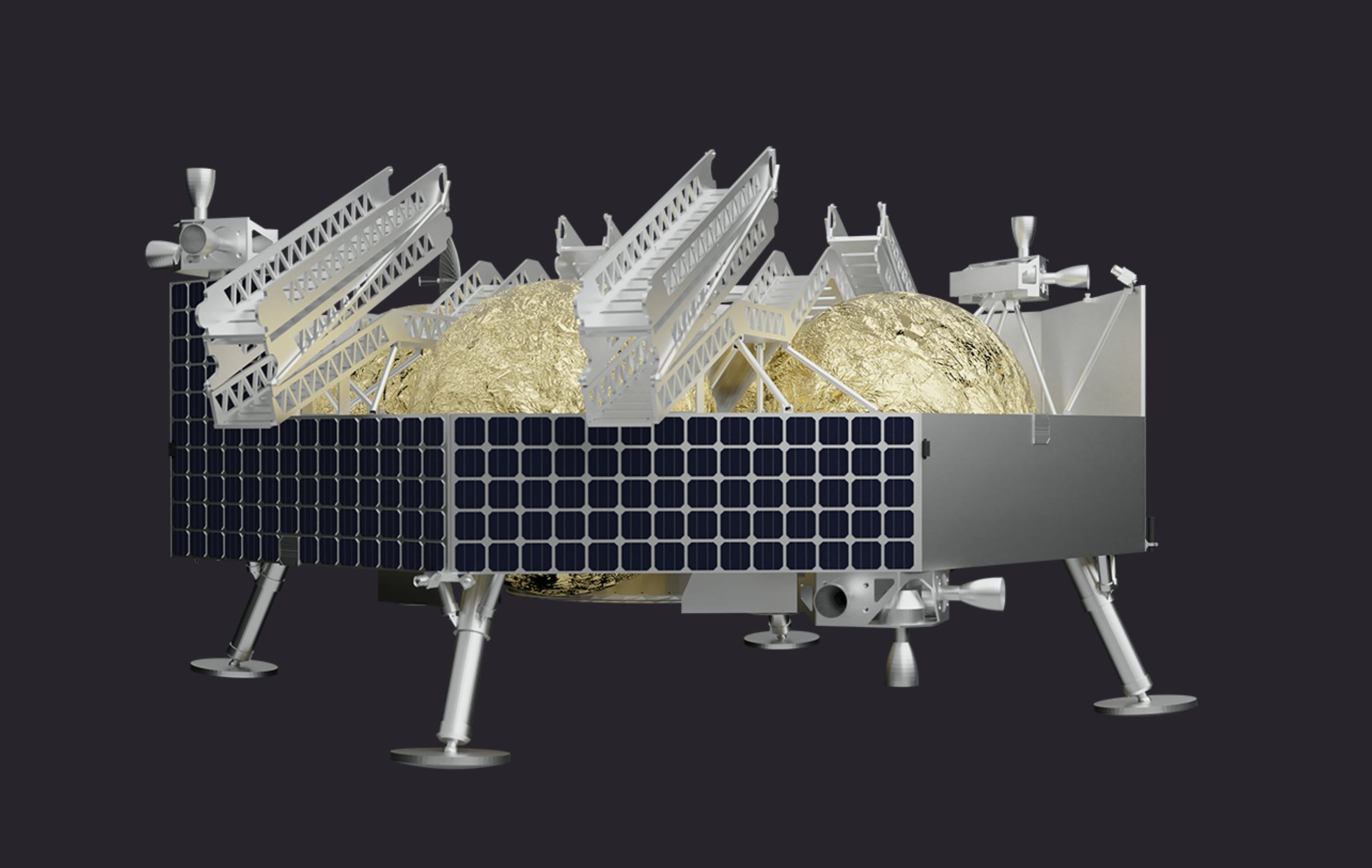 What exactly happens in those thirty minutes? — Altitude control thrusters surround the Griffin, Astrobotic's signature lander, controlling its orientation as it descends. Then, seven main engines fire twice — first to enter lunar orbit, and then again to descend lower. At a proper height, the craft will begin a lunar descent phase, where it starts to enter a trajectory that “almost intersects with the Moon,” Thornton says, “and that sends us on a terminal trajectory toward landing.”