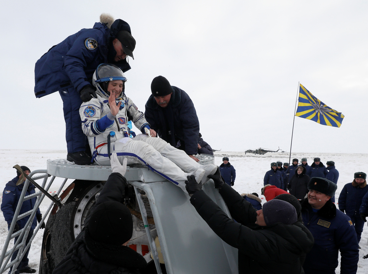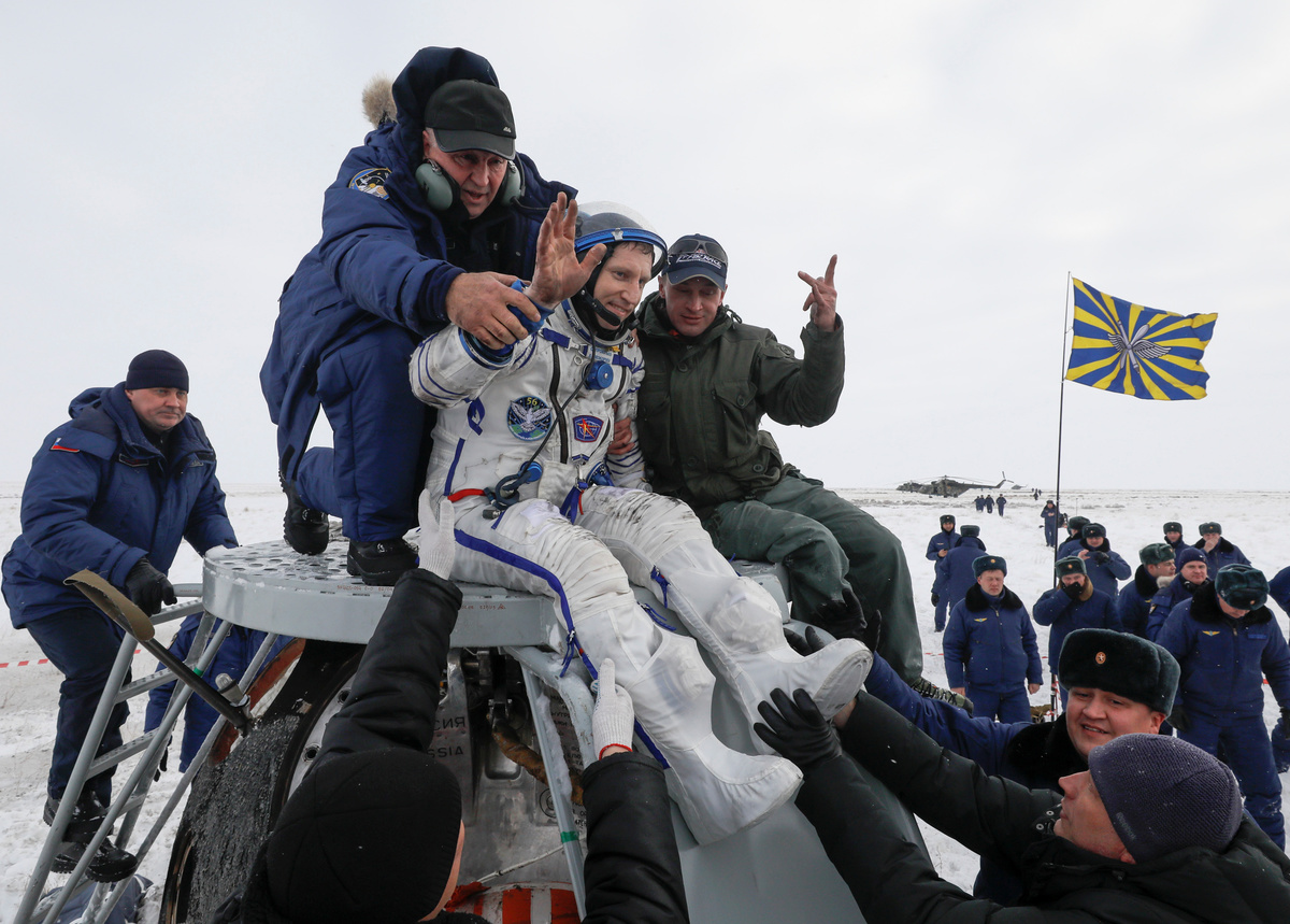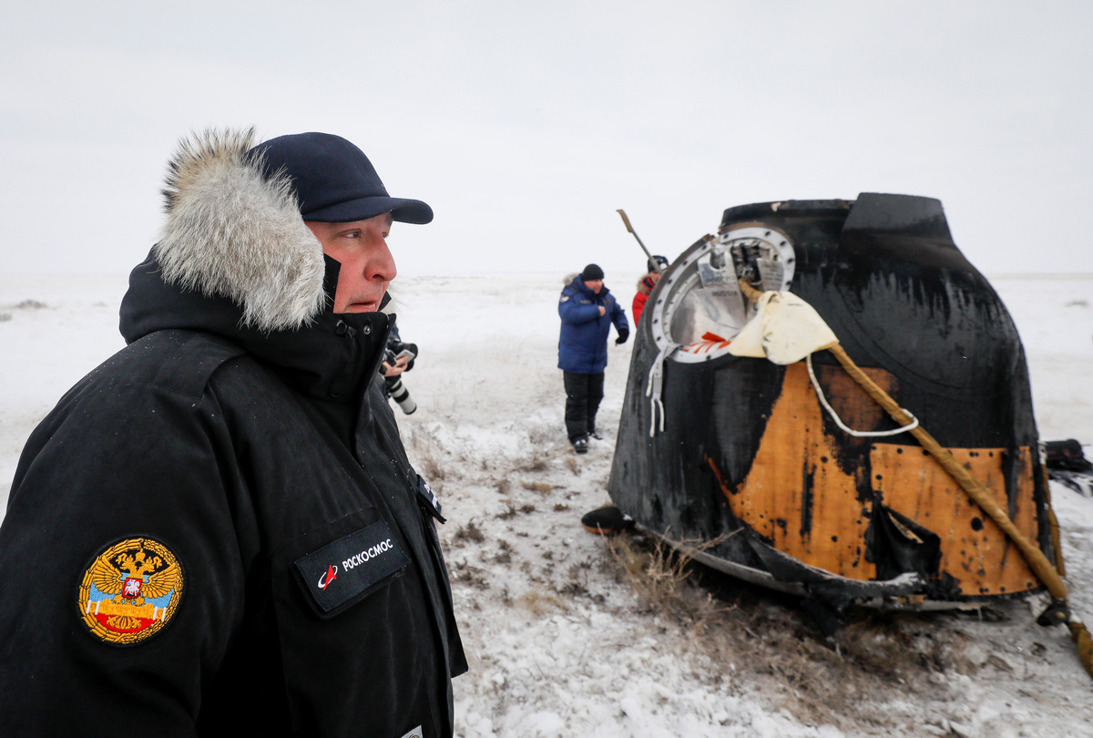 The International Space Station (ISS) crew members Serena Aunon-Chancellor of the U.S., Alexander Gerst of Germany and Sergey Prokopyev of Russia rest after the landing of the Soyuz MS-09 capsule in a remote area near the town of Zhezkazgan, formerly known as Dzhezkazgan, Kazakhstan December 20, 2018. REUTERS/Shamil ZhumatovInternational Space Station (ISS) crew member Serena Aunon-Chancellor of the U.S. reacts as she rests after the landing of the Soyuz MS-09 capsule in a remote area near the town of Zhezkazgan, formerly known as Dzhezkazgan, Kazakhstan December 20, 2018. REUTERS/Shamil ZhumatovInternational Space Station (ISS) crew member Sergey Prokopyev of Russia rests after the landing of the Soyuz MS-09 capsule in a remote area near the town of Zhezkazgan, formerly known as Dzhezkazgan, Kazakhstan December 20, 2018. REUTERS/Shamil ZhumatovInternational Space Station (ISS) crew member Alexander Gerst of Germany rests after the landing of the Soyuz MS-09 capsule in a remote area near the town of Zhezkazgan, formerly known as Dzhezkazgan, Kazakhstan December 20, 2018. REUTERS/Shamil ZhumatovSearch and rescue personnel surround the Soyuz MS-09 capsule for the International Space Station (ISS) crew members Serena Aunon-Chancellor of the U.S., Alexander Gerst of Germany and Sergey Prokopyev of Russia after its landing in a remote area near the town of Zhezkazgan, formerly known as Dzhezkazgan, Kazakhstan December 20, 2018. REUTERS/Shamil ZhumatovDmitry Rogozin, head of the Russian space agency Roscosmos, stands near the Soyuz MS-09 capsule for the International Space Station (ISS) crew members Serena Aunon-Chancellor of the U.S., Alexander Gerst of Germany and Sergey Prokopyev of Russia shortly after its landing in a remote area near the town of Zhezkazgan, formerly known as Dzhezkazgan, Kazakhstan December 20, 2018. REUTERS/Shamil ZhumatovSearch and rescue personnel work at the landing site of the Soyuz MS-09 capsule, carrying the International Space Station (ISS) crew members Serena Aunon-Chancellor of the U.S., Alexander Gerst of Germany and Sergey Prokopyev of Russia, in a remote area near the town of Zhezkazgan, formerly known as Dzhezkazgan, Kazakhstan December 20, 2018. REUTERS/Shamil Zhumatov