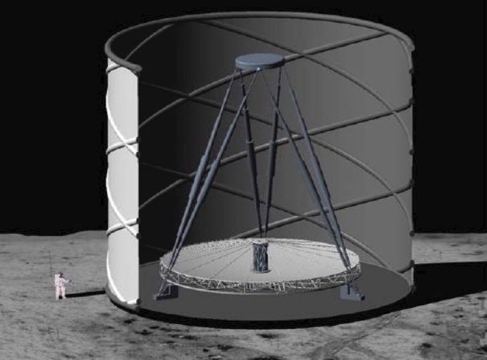 The proposed telescope would be built specifically so that it could be transported to the Moon, where it would sit inside a crater, spinning around and peering into the early universe.