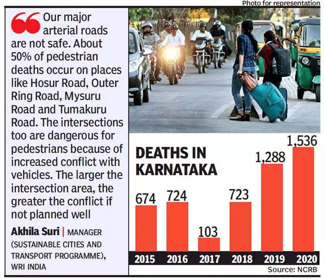 BENGALURU: Karnataka has recorded the highest number of pedestrian deaths in road accidents in the country in 2020.