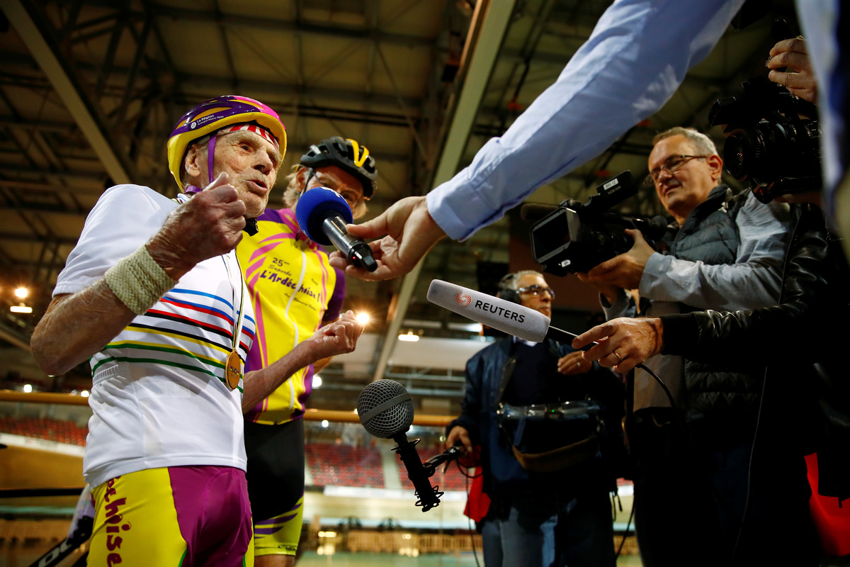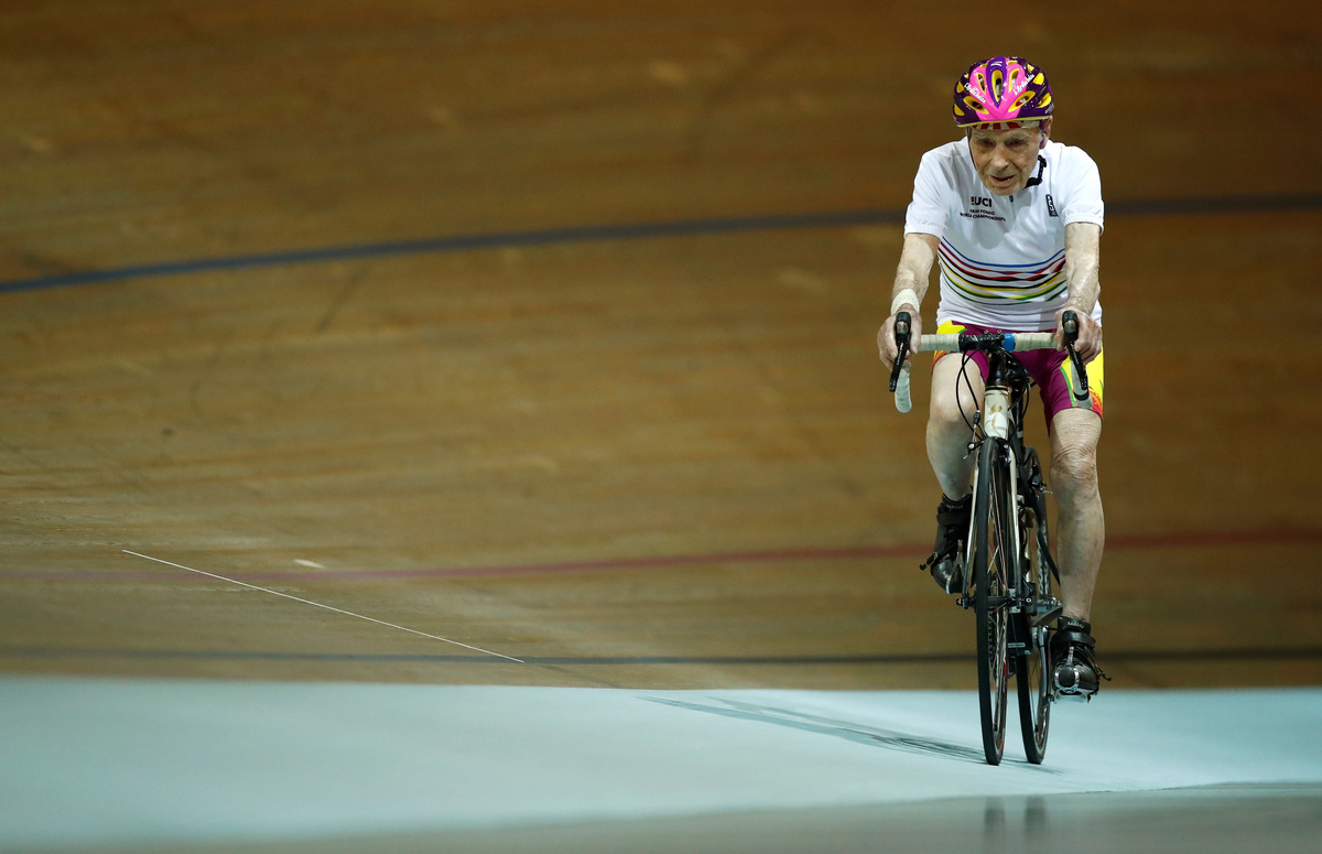 MONTIGNY-LE-BRETONNEUX, France (Reuters) - Centenarian cyclist Robert Marchand donned his lycra shorts again on Friday and rode cautiously around France's indoor Velodrome National, becoming by far the oldest person to take a spin on the circuit.