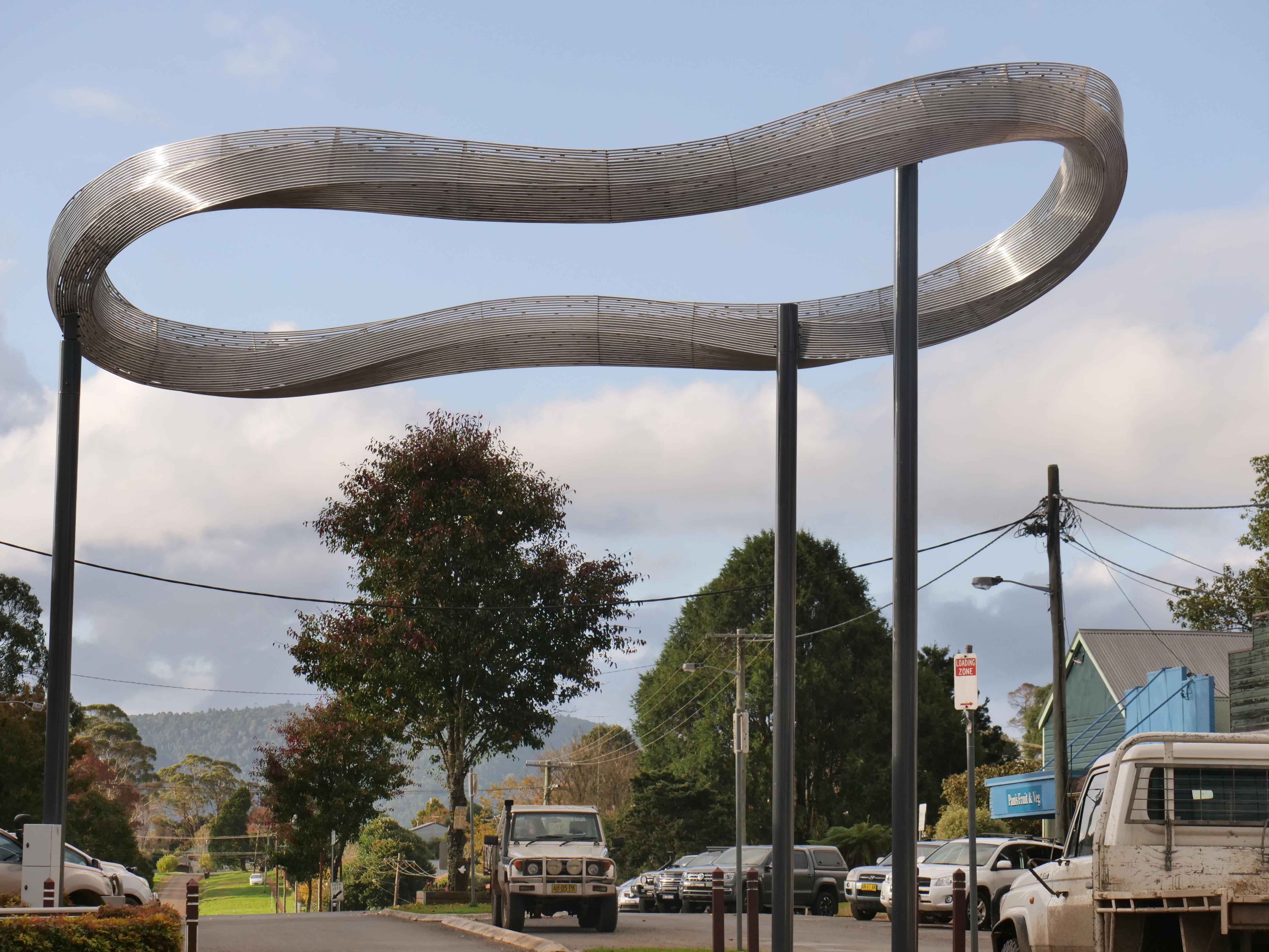 West Australian sculptor Stuart Green designed the work to reflect the essence of the town that has an average annual rainfall of 2,000 millimetres and is known for its World Heritage-listed national parks, rolling waterfalls and lush dairy pastures.