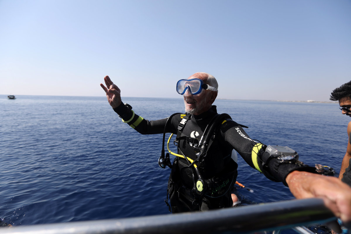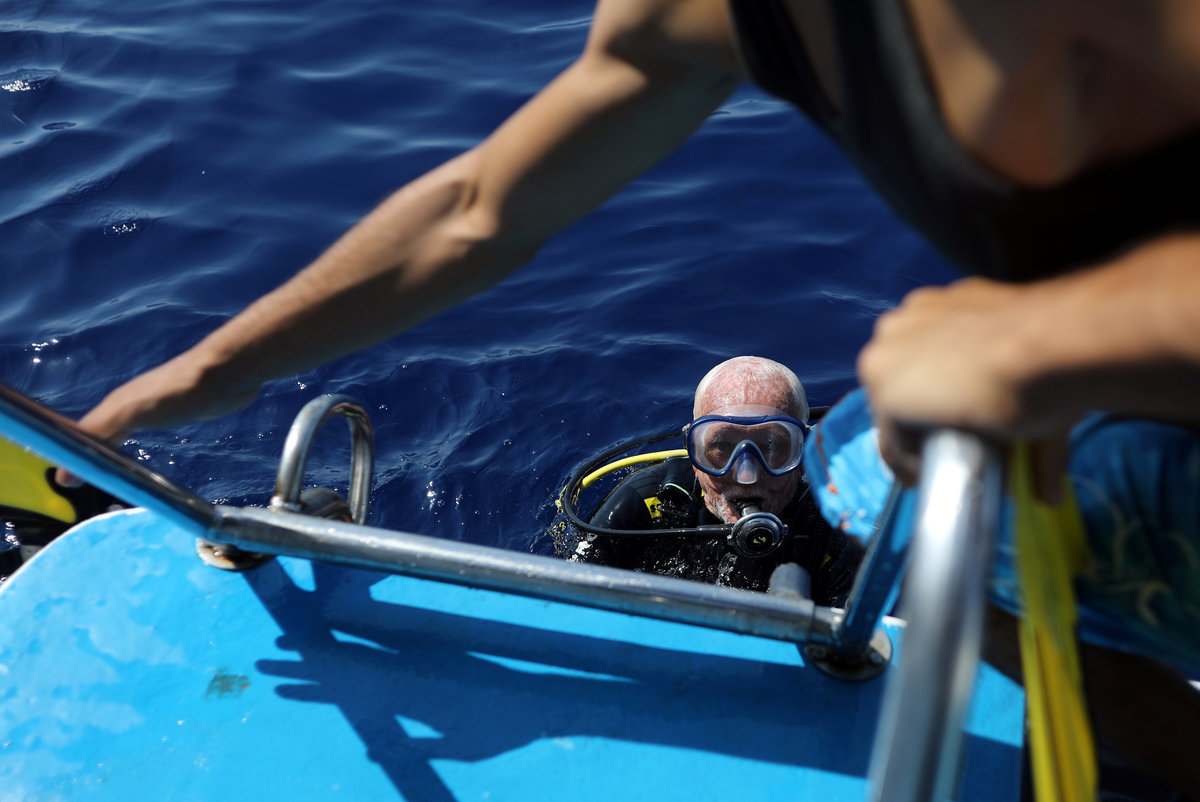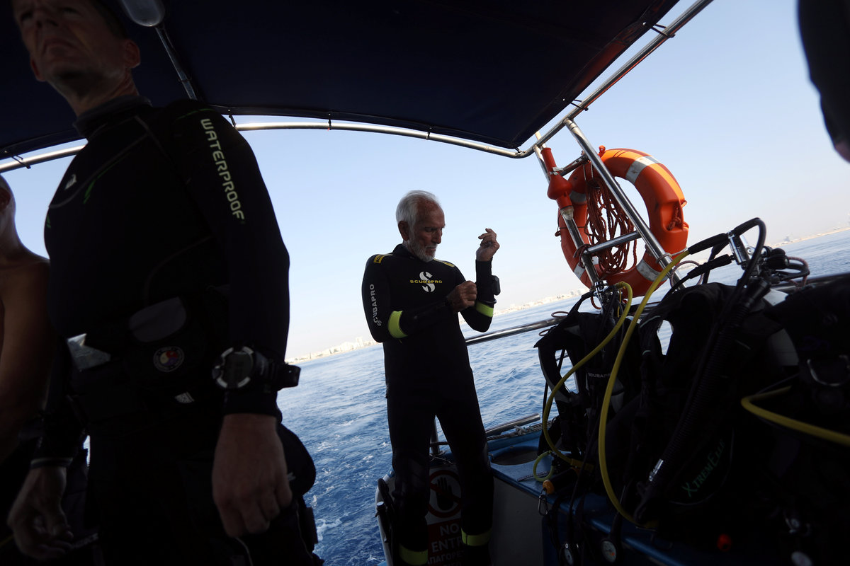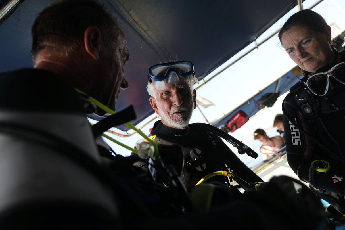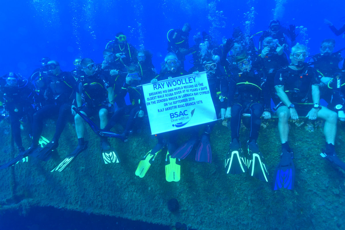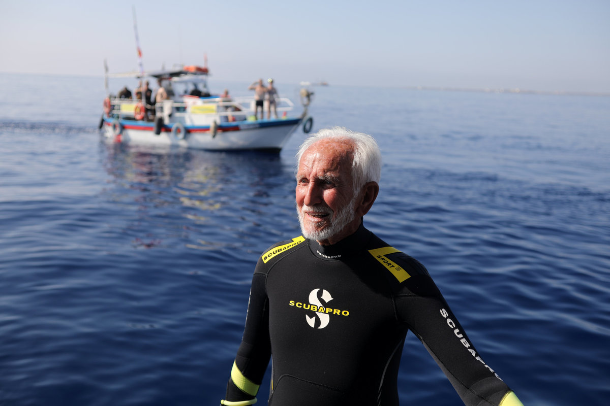 Ray Woolley, pioneer diver and World War 2 veteran, is seen before breaking a new diving record as he turns 95 by taking the plunge at the Zenobia, a cargo ship wreck off the Cypriot town of Larnaca, Cyprus September 1, 2018. REUTERS/Yiannis KourtoglouRay Woolley, pioneer diver and World War 2 veteran, and other scuba divers pose for a photo at the Zenobia wreck, off the Cypriot town of Larnaca, Cyprus September 1, 2018. Costas Constantinou/ Larnaca Tourism Board/Handout via Ray Woolley, pioneer diver and World War 2 veteran, is seen before breaking a new diving record as he turns 95 by taking the plunge at the Zenobia, a cargo ship wreck off the Cypriot town of Larnaca, Cyprus September 1, 2018. REUTERS/Yiannis KourtoglouRay Woolley, pioneer diver and World War 2 veteran, is seen before breaking a new diving record as he turns 95 by taking the plunge at the Zenobia, a cargo ship wreck off the Cypriot town of Larnaca, Cyprus September 1, 2018. REUTERS/Yiannis KourtoglouRay Woolley, pioneer diver and World War 2 veteran, prepares his gear before breaking a new diving record as he turns 95 by taking the plunge at the Zenobia, a cargo ship wreck off the Cypriot town of Larnaca, Cyprus September 1, 2018. REUTERS/Yiannis KourtoglouRay Woolley, pioneer diver and World War 2 veteran, is seen before breaking a new diving record as he turns 95 by taking the plunge at the Zenobia, a cargo ship wreck off the Cypriot town of Larnaca, Cyprus September 1, 2018. REUTERS/Yiannis KourtoglouRay Woolley, pioneer diver and World War 2 veteran, is seen before breaking a new diving record as he turns 95 by taking the plunge at the Zenobia, a cargo ship wreck off the Cypriot town of Larnaca, Cyprus September 1, 2018. REUTERS/Yiannis Kourtoglou