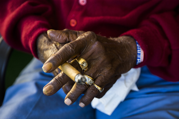 "I'm feeling pretty good today," Overton says, emphasizing the word pretty, because any day spent on this porch smoking cigars is a pretty good day for the 111-year-old.
