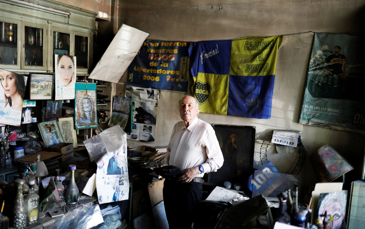 Victor, 80, poses inside the pharmacy he used to own in the La Boca neighbourhood, ahead of the second leg of the final of the Copa Libertadores between local rivals Boca Juniors and River Plate in Buenos Aires, Argentina, November 15, 2018. REUTERS/Nacho Doce