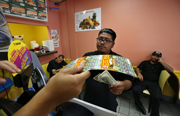 When word of the $10,000 win spread to the Americana's kitchen workers, busboys, janitors and valet parkers, more and more began to drop by Christina's. They arrive every day in their uniform white shirts, black pants and black shoes, and head straight to the glass case packed with more than 20 varieties of the scratch-off tickets, which the California Lottery calls Scratchers.