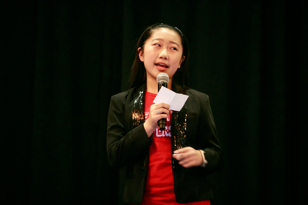 Seventh grader Katherine Kang described how she has already learned a key lesson in leadership: The importance of showing up and speaking her mind.