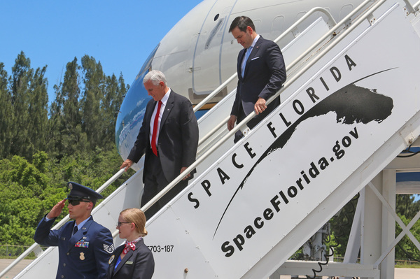 Pence's speech was attended by former astronaut Buzz Aldrin, the second man to walk on the moon; Florida Sens. Bill Nelson and Marco Rubio; state Attorney General Pam Bondi; and Adam Putnam, the agriculture commissioner and 2018 candidate for governor.