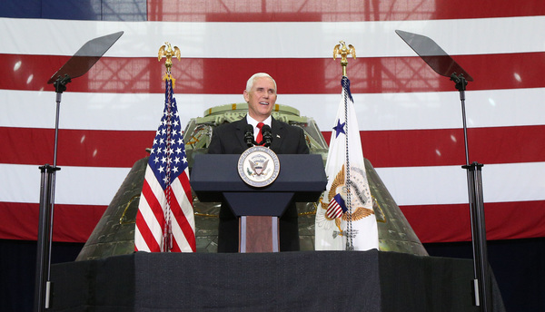 "Today, I come to assure you, the men and women of NASA ... that under President Donald Trump, America will lead in space once again," Pence said.