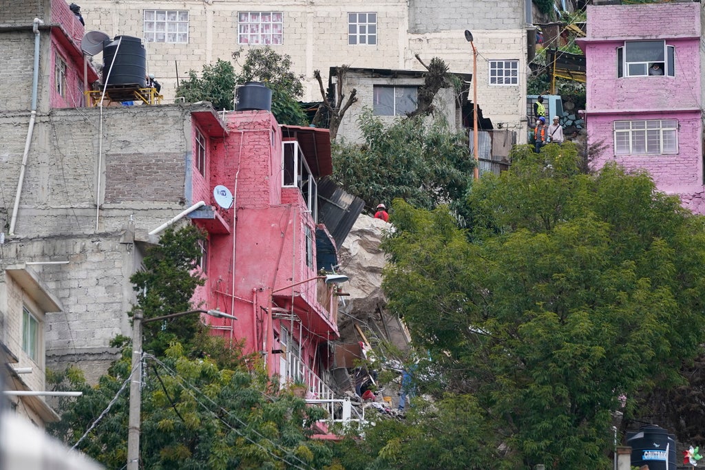 Firefighters scaled a three-story pile of rocks that appeared to be resting on houses in Tlalnepantla, which is part of Mexico state. The state surrounds the capital on three sides.