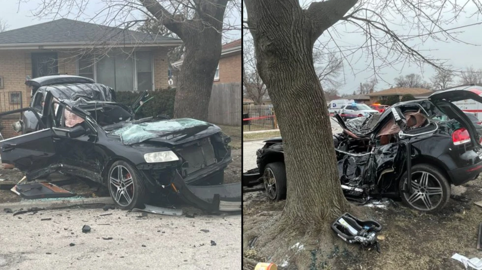 Two cars collided shortly before 2 p.m. in the 12400 block of South Michigan Avenue, Fire Department spokesman Larry Langford said. One of the cars went airborne and slammed into a tree.