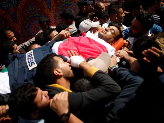 Well-known Palestinian journalist Yasser Murtaja was among the dead. He died from a gunshot wound sustained while filming in the area.