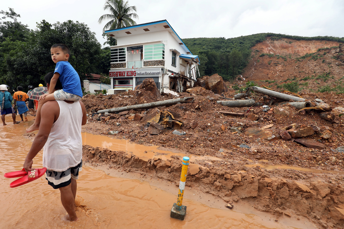 Chan Aye, 42, said he, his son and wife had been dragged to the river by the landslide.