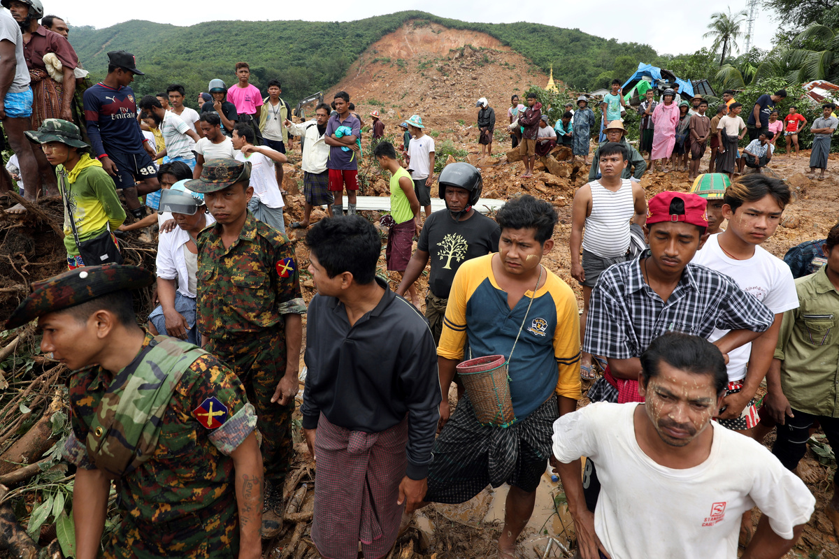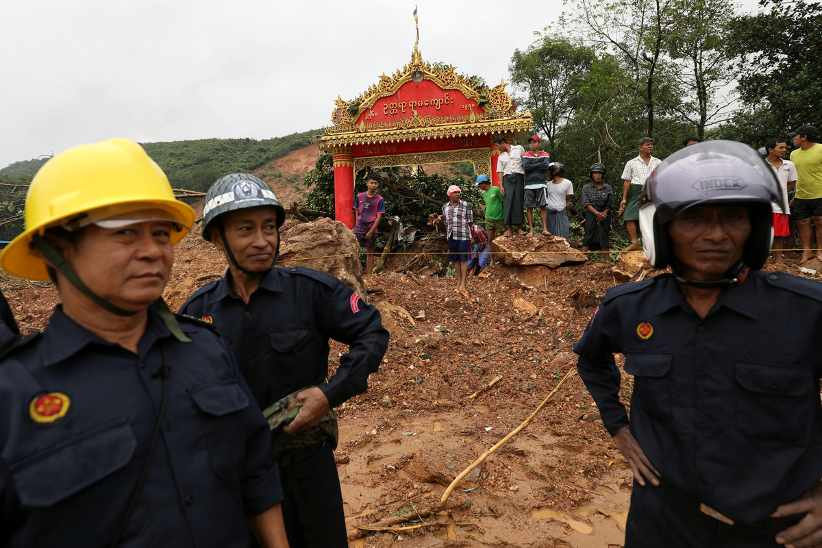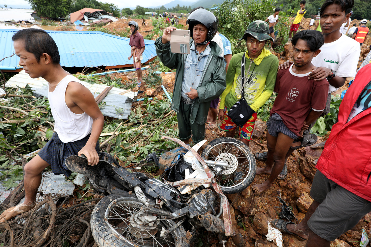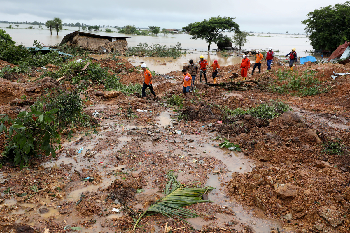 Heavy rain caused the landslide in Thaphyu Kone village, in the southern Mon state, sending mud crashing into a cluster of houses and burying residents.