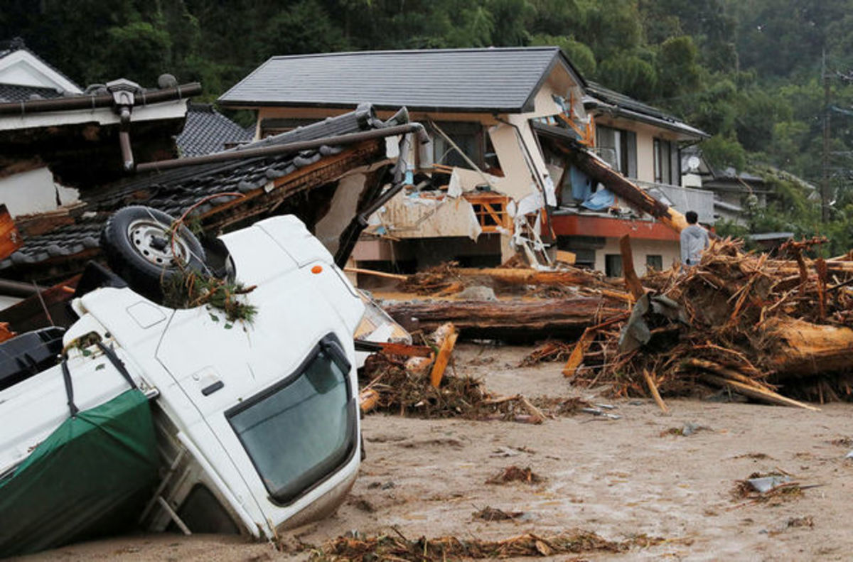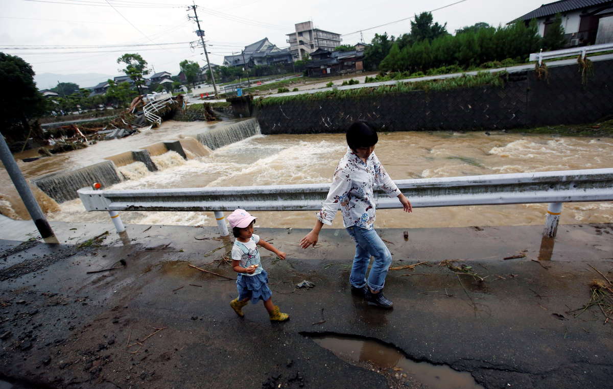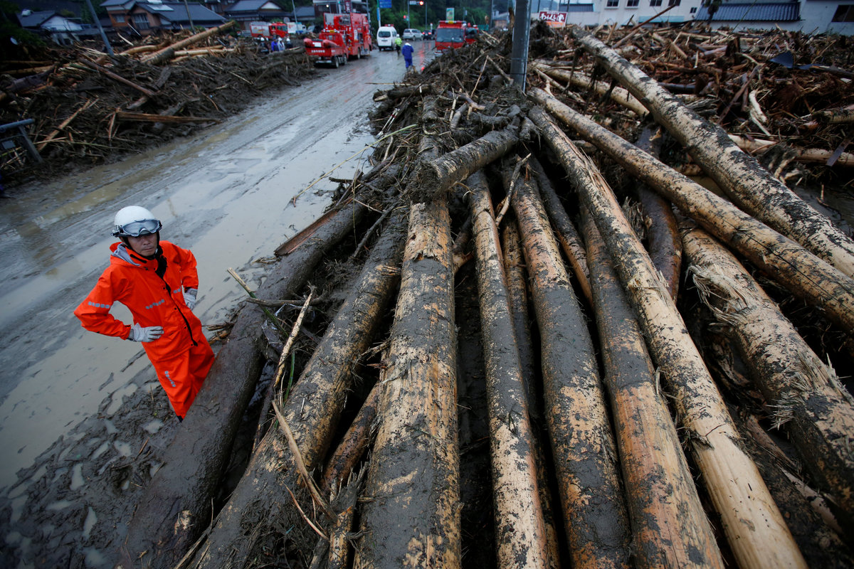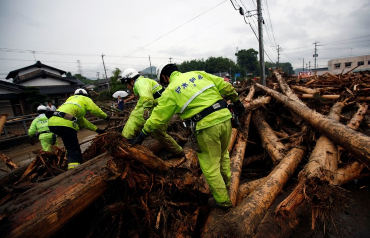 An area damaged by swollen river after heavy rain is seen in Asakura, Fukuoka Prefecture. REUTERS/Issei KatoCars damaged by swollen river are seen after heavy rain hit the area in Asakura, Fukuoka Prefecture, Japan July 6, 2017. REUTERS/Issei KatoA local resident is rescued by members of the Japan Self-Defense Force after heavy rain hit the area in Asakura, Fukuoka Prefecture. Defense Ministry of Japan/HANDOUT via REUTERSA firefighter is seen next to trees washed down by swollen river after heavy rain hit the area in Asakura, Fukuoka Prefecture, Japan July 6, 2017. REUTERS/Issei KatoHouses and a vehicle are damaged by a swollen river after heavy rain hit the area in Asakura, Fukuoka Prefecture, Japan in this photo taken by Kyodo on July 6, 2017. Mandatory credit Kyodo/via REUTERS A firefighter conducts rescue operations in an area damaged by heavy rain in Asakura, Fukuoka Prefecture, Japan July 6, 2017. REUTERS/Issei KatoLocal residents are rescued by firefighters after heavy rain hit the area in Asakura, Fukuoka Prefecture, Japan in this photo taken by Kyodo on July 6, 2017. Mandatory credit Kyodo/via REUTERS A local resident is rescued by a firefighter after heavy rain hit the area in Asakura, Fukuoka Prefecture, Japan in this photo taken by Kyodo on July 6, 2017. Mandatory credit Kyodo/via REUTERSA flooded road with fallen rocks is pictured in Hita in Oita Prefecture, Japan, after torrential rain hits, in this photo taken by Kyodo on July 5, 2017. Mandatory credit Kyodo/via REUTERSFirefighters rescue people with a boat in Asakura, Fukuoka Prefecture, Japan in this photo taken by Kyodo on July 6, 2017. Mandatory credit Kyodo/via An evacuee takes a rest in Asakura Education Center which is being used as an evacuation center In Asakura, Fukuoka Prefecture. REUTERS/Issei KatoLocal residents walk in an area damaged by swollen river after heavy rain in Asakura, Fukuoka Prefecture. REUTERS/Issei KatoA man walks through a flooded street in Asakura, Fukuoka Prefecture, Japan in this photo taken by Kyodo on July 5, 2017. Mandatory credit Kyodo/via REUTERS Evacuated people stay at a civic center, after heavy rain in Masuda, Japan July 5, 2017. Mandatory credit Kyodo/via REUTERS Debris is seen stuck at a railway bridge after heavy rain, at Hikosan Rive in Soeda, Japan July 5, 2017. Mandatory credit Kyodo/via REUTERS The swollen Hikosan River is pictured in Soeda in Fukuoka Prefecture, Japan, after torrential rain hits in this photo taken by Kyodo on July 5, 2017. Mandatory credit Kyodo/via REUTERS A flooded road with fallen rocks is pictured in Hita in Oita Prefecture, Japan, after torrential rain hits, in this photo taken by Kyodo on July 5, 2017. Mandatory credit Kyodo/via REUTERS A road is flooded by heavy rain in Asakura, Fukuoka Prefecture, Japan in this photo taken by Kyodo on July 5, 2017. Mandatory credit Kyodo/via REUTERS People look at a flooded road and swollen river due to heavy rain in Miyoshi, Hiroshima prefecture, Japan in this photo taken by Kyodo July 5, 2017. Mandatory credit Kyodo/via REUTERS