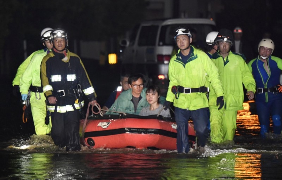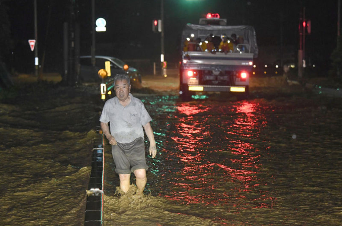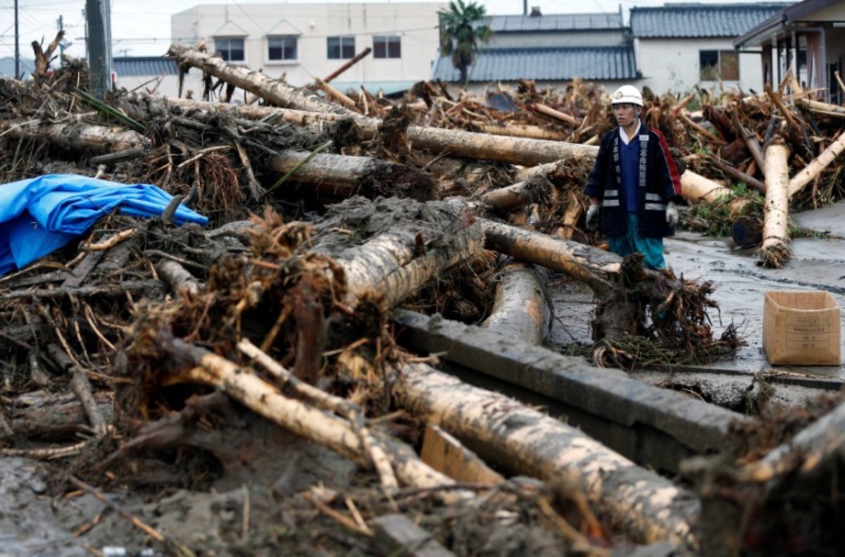 An area damaged by swollen river after heavy rain is seen in Asakura, Fukuoka Prefecture. REUTERS/Issei KatoCars damaged by swollen river are seen after heavy rain hit the area in Asakura, Fukuoka Prefecture, Japan July 6, 2017. REUTERS/Issei KatoA local resident is rescued by members of the Japan Self-Defense Force after heavy rain hit the area in Asakura, Fukuoka Prefecture. Defense Ministry of Japan/HANDOUT via REUTERSA firefighter is seen next to trees washed down by swollen river after heavy rain hit the area in Asakura, Fukuoka Prefecture, Japan July 6, 2017. REUTERS/Issei KatoHouses and a vehicle are damaged by a swollen river after heavy rain hit the area in Asakura, Fukuoka Prefecture, Japan in this photo taken by Kyodo on July 6, 2017. Mandatory credit Kyodo/via REUTERS A firefighter conducts rescue operations in an area damaged by heavy rain in Asakura, Fukuoka Prefecture, Japan July 6, 2017. REUTERS/Issei KatoLocal residents are rescued by firefighters after heavy rain hit the area in Asakura, Fukuoka Prefecture, Japan in this photo taken by Kyodo on July 6, 2017. Mandatory credit Kyodo/via REUTERS A local resident is rescued by a firefighter after heavy rain hit the area in Asakura, Fukuoka Prefecture, Japan in this photo taken by Kyodo on July 6, 2017. Mandatory credit Kyodo/via REUTERSA flooded road with fallen rocks is pictured in Hita in Oita Prefecture, Japan, after torrential rain hits, in this photo taken by Kyodo on July 5, 2017. Mandatory credit Kyodo/via REUTERSFirefighters rescue people with a boat in Asakura, Fukuoka Prefecture, Japan in this photo taken by Kyodo on July 6, 2017. Mandatory credit Kyodo/via An evacuee takes a rest in Asakura Education Center which is being used as an evacuation center In Asakura, Fukuoka Prefecture. REUTERS/Issei KatoLocal residents walk in an area damaged by swollen river after heavy rain in Asakura, Fukuoka Prefecture. REUTERS/Issei KatoA man walks through a flooded street in Asakura, Fukuoka Prefecture, Japan in this photo taken by Kyodo on July 5, 2017. Mandatory credit Kyodo/via REUTERS Evacuated people stay at a civic center, after heavy rain in Masuda, Japan July 5, 2017. Mandatory credit Kyodo/via REUTERS Debris is seen stuck at a railway bridge after heavy rain, at Hikosan Rive in Soeda, Japan July 5, 2017. Mandatory credit Kyodo/via REUTERS The swollen Hikosan River is pictured in Soeda in Fukuoka Prefecture, Japan, after torrential rain hits in this photo taken by Kyodo on July 5, 2017. Mandatory credit Kyodo/via REUTERS A flooded road with fallen rocks is pictured in Hita in Oita Prefecture, Japan, after torrential rain hits, in this photo taken by Kyodo on July 5, 2017. Mandatory credit Kyodo/via REUTERS A road is flooded by heavy rain in Asakura, Fukuoka Prefecture, Japan in this photo taken by Kyodo on July 5, 2017. Mandatory credit Kyodo/via REUTERS People look at a flooded road and swollen river due to heavy rain in Miyoshi, Hiroshima prefecture, Japan in this photo taken by Kyodo July 5, 2017. Mandatory credit Kyodo/via REUTERS