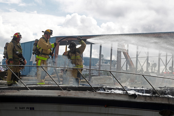 The blaze broke out just before 2 p.m. on a 41-foot Wellcraft pleasure boat that was cruising the New River toward the Intracoastal Waterway.