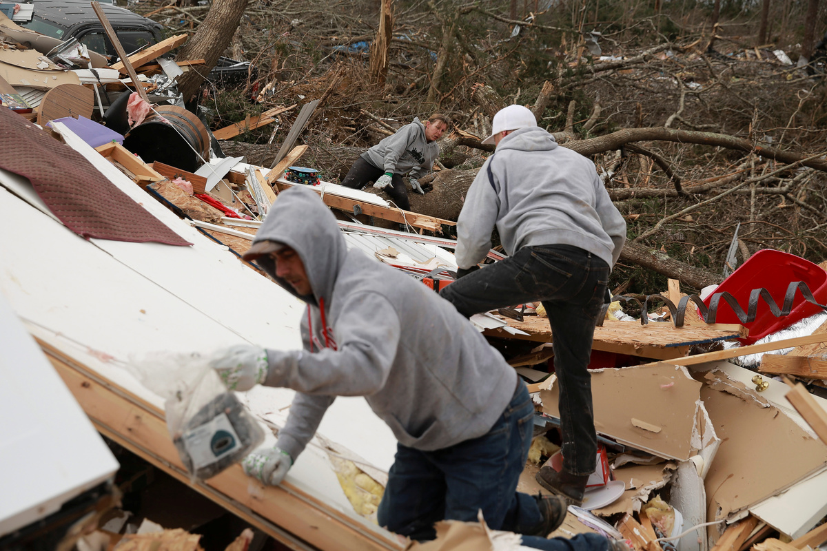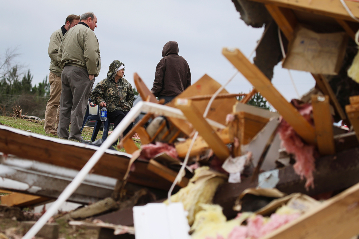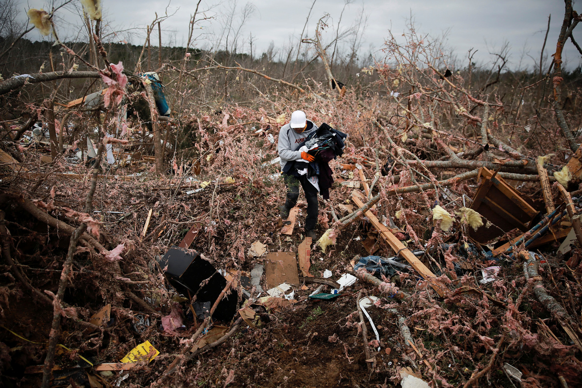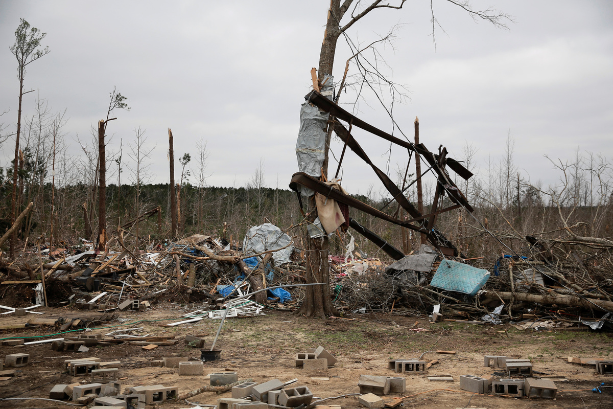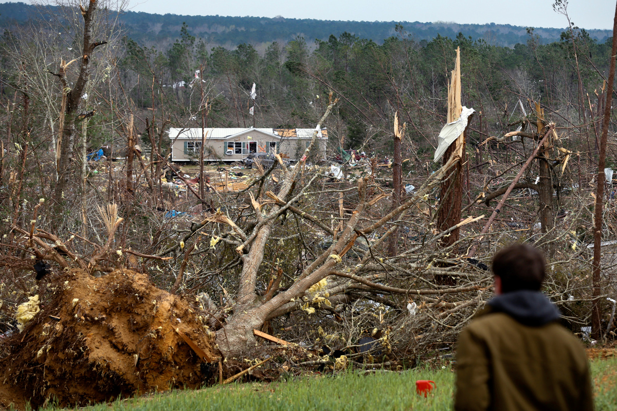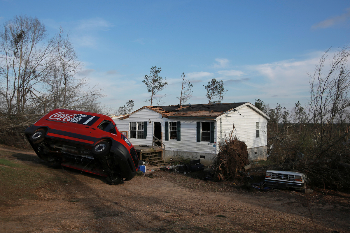 Pieces of metal are seen wrapped around a tree near the remains of a home after two deadly back-to-back tornadoes, in Beauregard, Alabama, U.S., March 4, 2019. REUTERS/Elijah NouvelagePeople look through the wreckage of their friend's home after two back-to-back tornadoes touched down, in Beauregard, Alabama, U.S., March 4, 2019. REUTERS/Elijah NouvelagePeople look through the wreckage of their friend's home after two back-to-back tornadoes touched down, in Beauregard, Alabama, U.S., March 4, 2019. REUTERS/Elijah NouvelageThe remains of a 'Welcome' sign is seen on the ground near a demolished home after two deadly back-to-back tornadoes, in Beauregard, Alabama, U.S., March 4, 2019. REUTERS/Elijah NouvelageDax Leandro salvages clothing from the wreckage of his friend's home after two back-to-back tornadoes touched down, in Beauregard, Alabama, U.S., March 4, 2019. REUTERS/Elijah NouvelageDax Leandro salvages clothing from the wreckage of his friend's home after two back-to-back tornadoes touched down, in Beauregard, Alabama, U.S., March 4, 2019. REUTERS/Elijah NouvelageDax Leandro shows Julie Morrison (not pictured) a family photo he found in the wreckage of her home after two back-to-back tornadoes touched down, in Beauregard, Alabama, U.S., March 4, 2019. REUTERS/Elijah NouvelagePeople clear fallen trees and debris on a road following a tornado in Beauregard, Alabama, U.S. in this March 3, 2019 still image obtained from social media video. SCOTT FILLMER /via REUTERS A piece of metal is seen wrapped around a tree following a tornado in Beauregard, Alabama, U.S. in this March 3, 2019 still image obtained from social media video on March 4, 2019. SCOTT FILLMER /via REUTERS Fallen trees obstruct a road following a tornado in Beauregard, Alabama, U.S. in this March 3, 2019 still image obtained from social media video. SCOTT FILLMER /via REUTERS Damaged trees seen following a tornado in Beauregard, Alabama, U.S. in this March 3, 2019 still image obtained from social media video. SCOTT FILLMER /via REUTERS Damaged vehicles in a shelter next to debris following a tornado in Beauregard, Alabama, U.S. in this March 3, 2019 still image obtained from social media video. SCOTT FILLMER /via REUTERS Fallen trees lie across a road following a tornado in Beauregard, Alabama, U.S. in this March 3, 2019 still image obtained from social media video. SCOTT FILLMER /via REUTERS People look on as debris is cleared along a road following a tornado in Beauregard, Alabama, U.S. in this March 3, 2019 still image obtained from social media video. SCOTT FILLMER /via REUTERS Fallen trees seen following a tornado in Beauregard, Alabama, U.S. in this March 3, 2019 still image obtained from social media video. SCOTT FILLMER /via REUTERSDebris and a damaged house seen following a tornado in Beauregard, Alabama, U.S. in this March 3, 2019 still image obtained from social media video. SCOTT FILLMER /via REUTERSDebris of housing seen following a tornado in Beauregard, Alabama, U.S. in this March 3, 2019 still image obtained from social media video. SCOTT FILLMER /via REUTERS Damaged trees seen following a tornado in Beauregard, Alabama, U.S. in this March 3, 2019 still image obtained from social media video. SCOTT FILLMER /via REUTERS