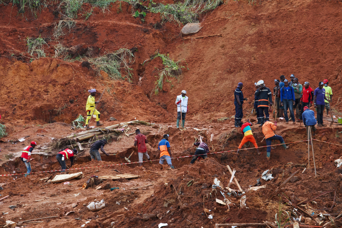 Rescue workers search for casualties at the site of a landslide caused by heavy rains in the town of Bafoussam in the western highlands, Cameroon October 30, 2019. REUTERS/Stringer