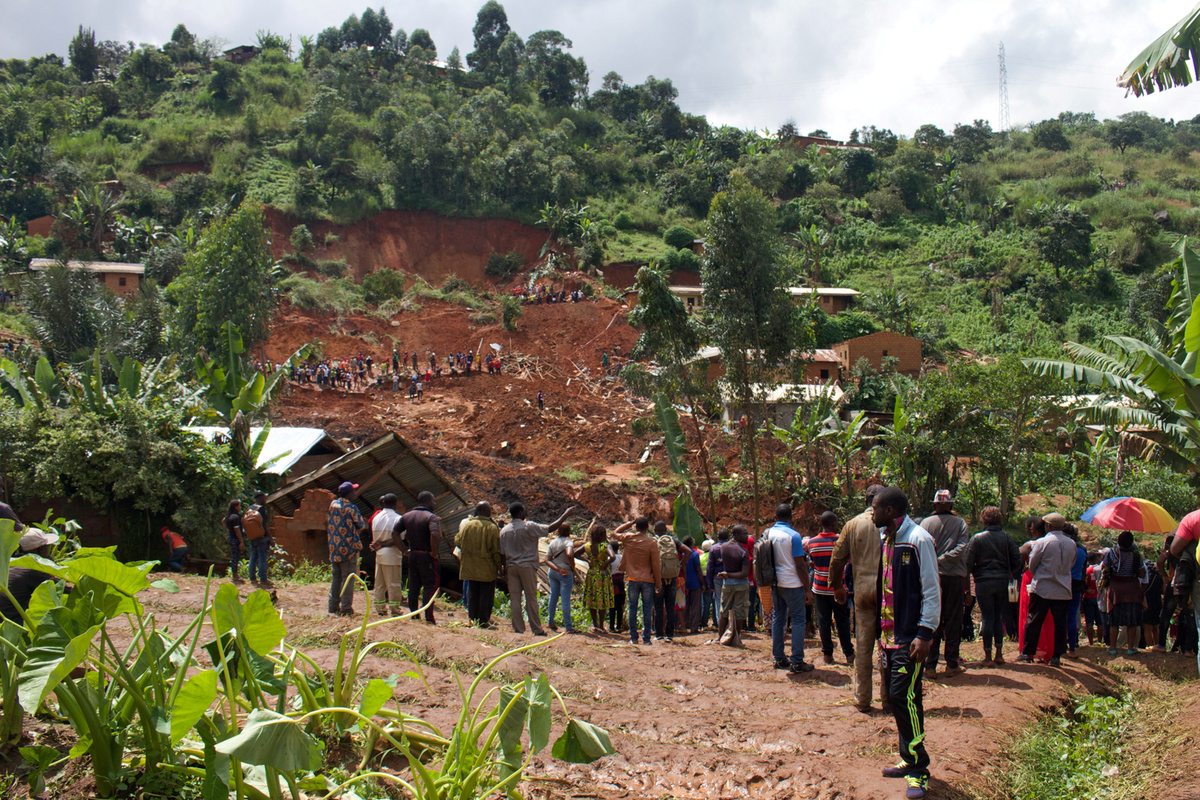 Rescue workers search for casualties at the site of a landslide caused by heavy rains in the town of Bafoussam in the western highlands, Cameroon October 30, 2019. REUTERS/Stringer Rescue workers search for casualties at the site of a landslide caused by heavy rains in the town of Bafoussam in the western highlands, Cameroon October 30, 2019. REUTERS/Stringer People gather at the site of a landslide caused by heavy rains in the town of Bafoussam in the western highlands, Cameroon October 30, 2019. REUTERS/Stringer A view shows damage at the site of a landslide caused by heavy rains in the town of Bafoussam in the western highlands, Cameroon October 30, 2019. REUTERS/Stringer A woman carries belongings as she evacuates a site of a landslide caused by heavy rains in the town of Bafoussam in the western highlands, Cameroon October 30, 2019. REUTERS/Stringer