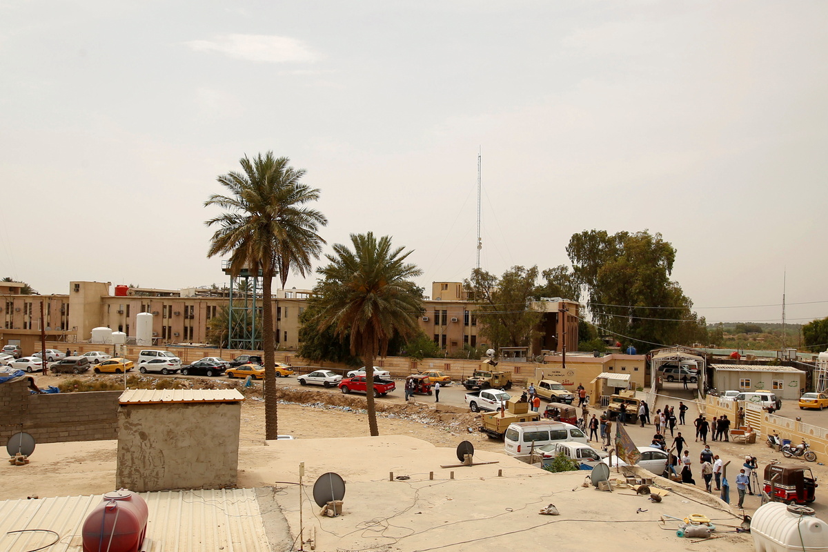 Security forces cordoned off the hospital, in the Diyala Bridge area of the Iraqi capital, where charred debris and shattered glass littered the ground outside.