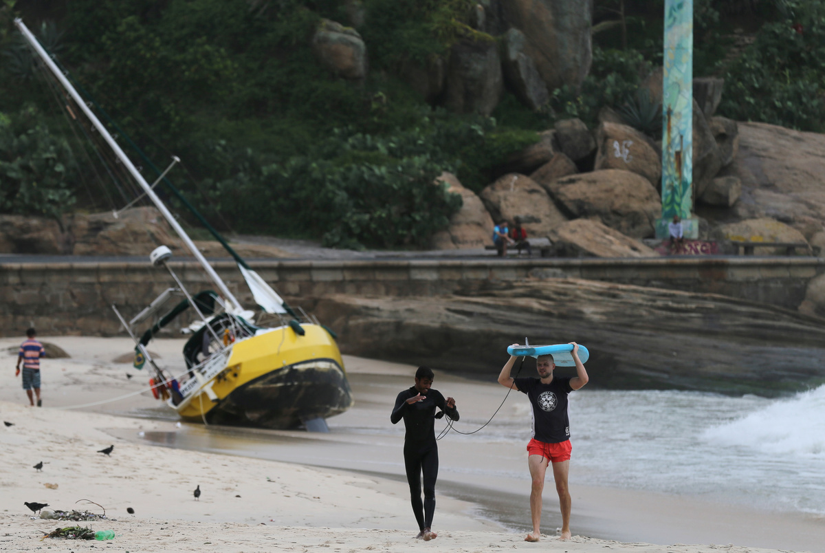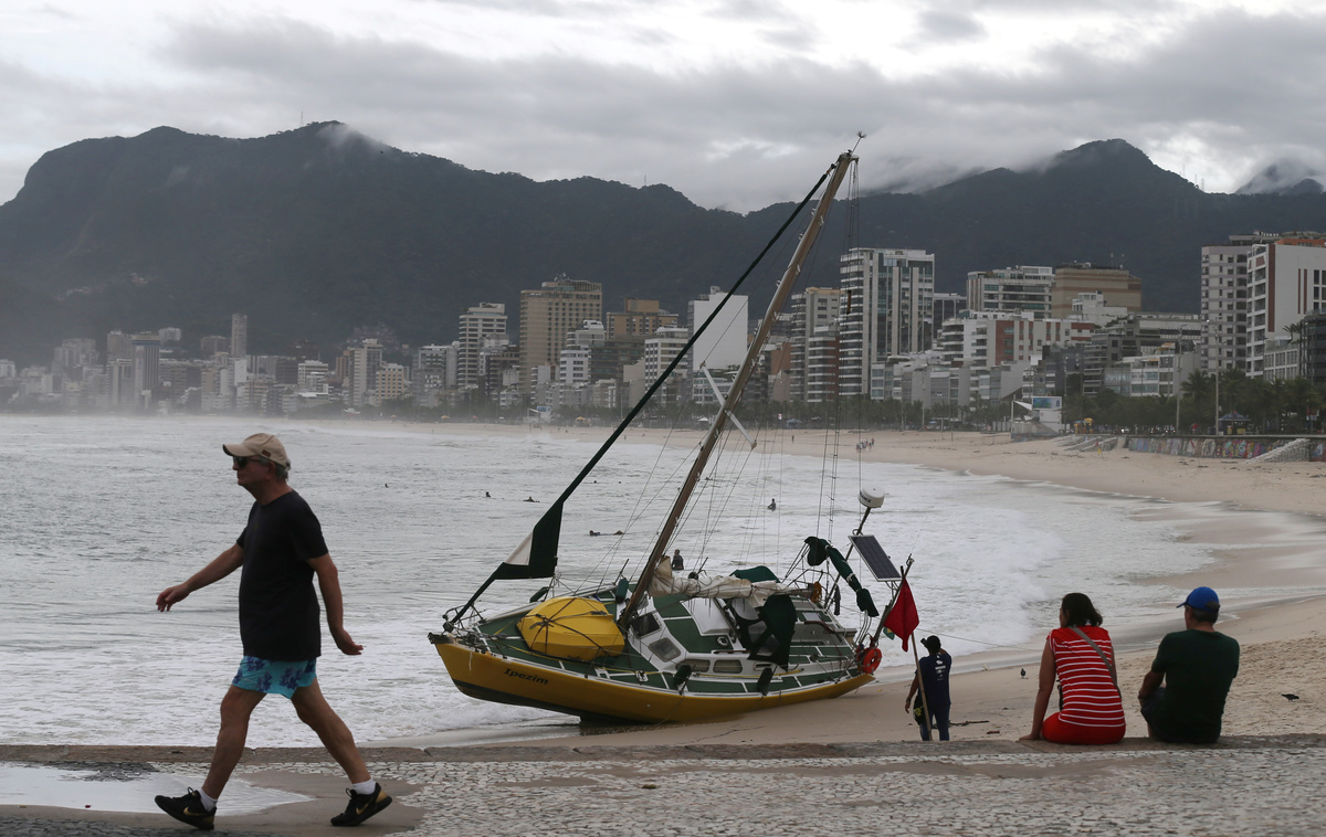 In Arpoador, on Ipanema's world-famous beach, a small sailboat was washed up on shore. The couple inside managed to escape when it was swept ashore, local media reported.