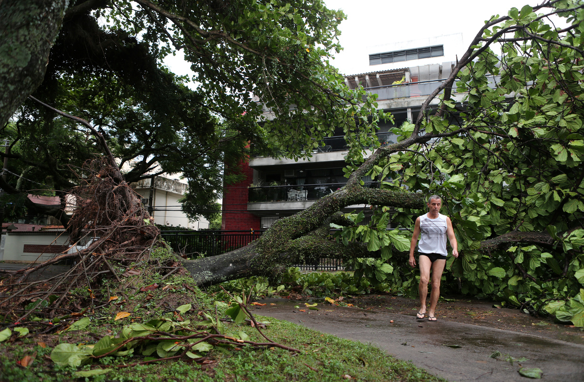 A fallen tree is seen after heavy rains in Barra da Tijuca neighborhood in Rio de Janeiro, Brazil February 7, 2019. REUTERS/Sergio Moraes