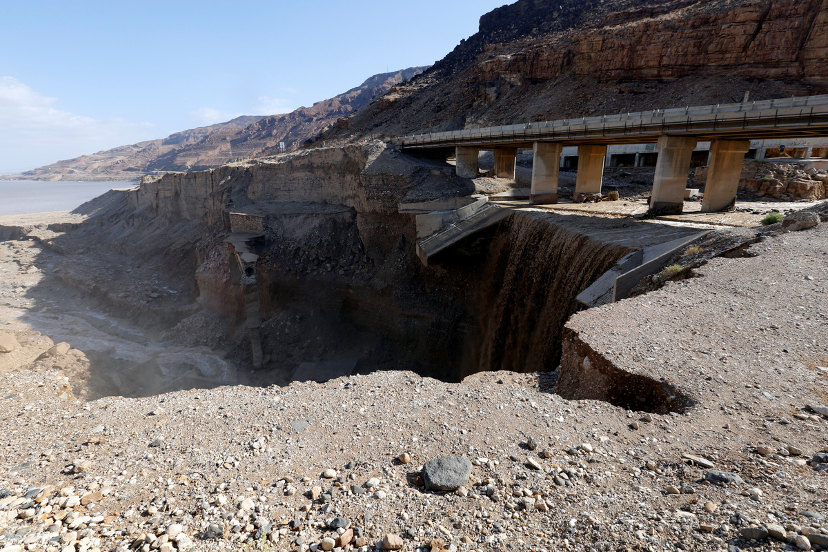 A bridge on one of the cliffs of the Dead Sea collapsed under the force of the rains, the first such after the end of summer.