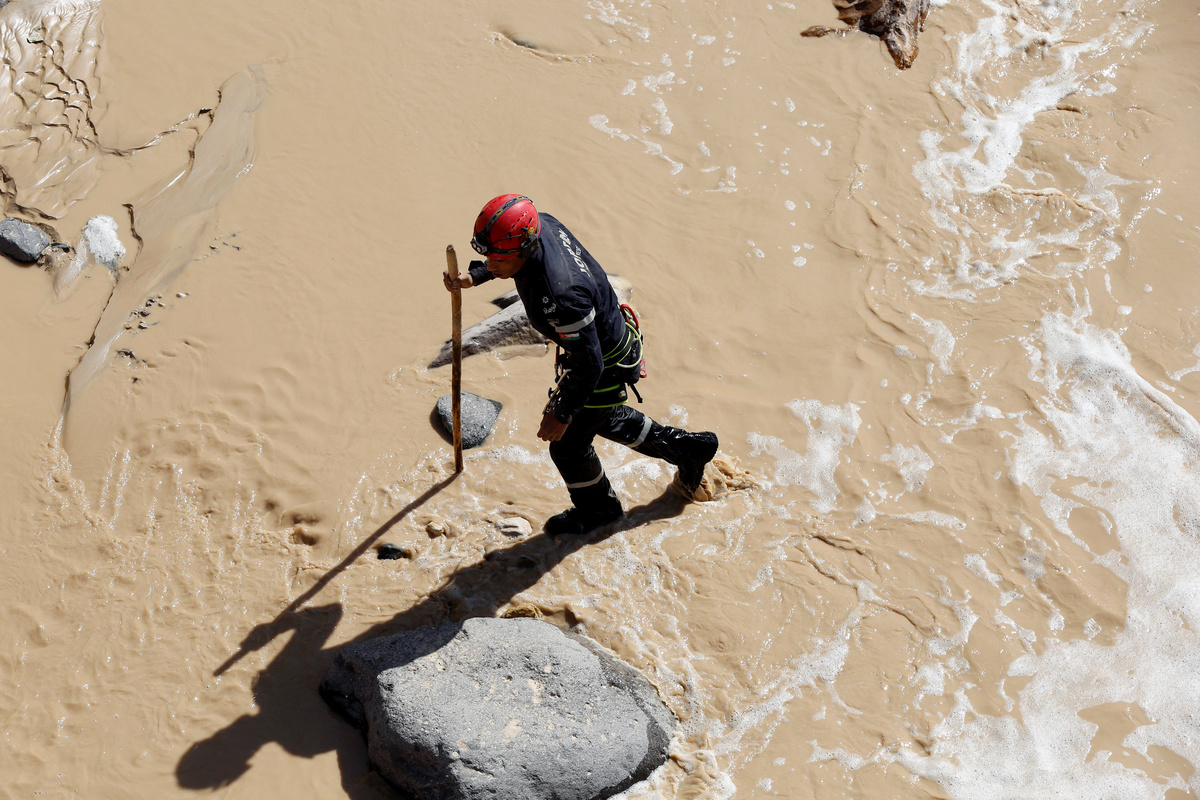 Civil defense members look for survivors after rain storms unleashed flash floods, near the Dead Sea, Jordan October 26, 2018. REUTERS/Muhammad Hamed