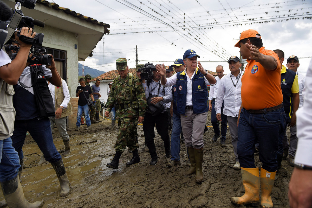 President Juan Manuel Santos visited Corinto on Wednesday to promise aid to its 30,000 residents, as rescue workers continued to search for the missing.