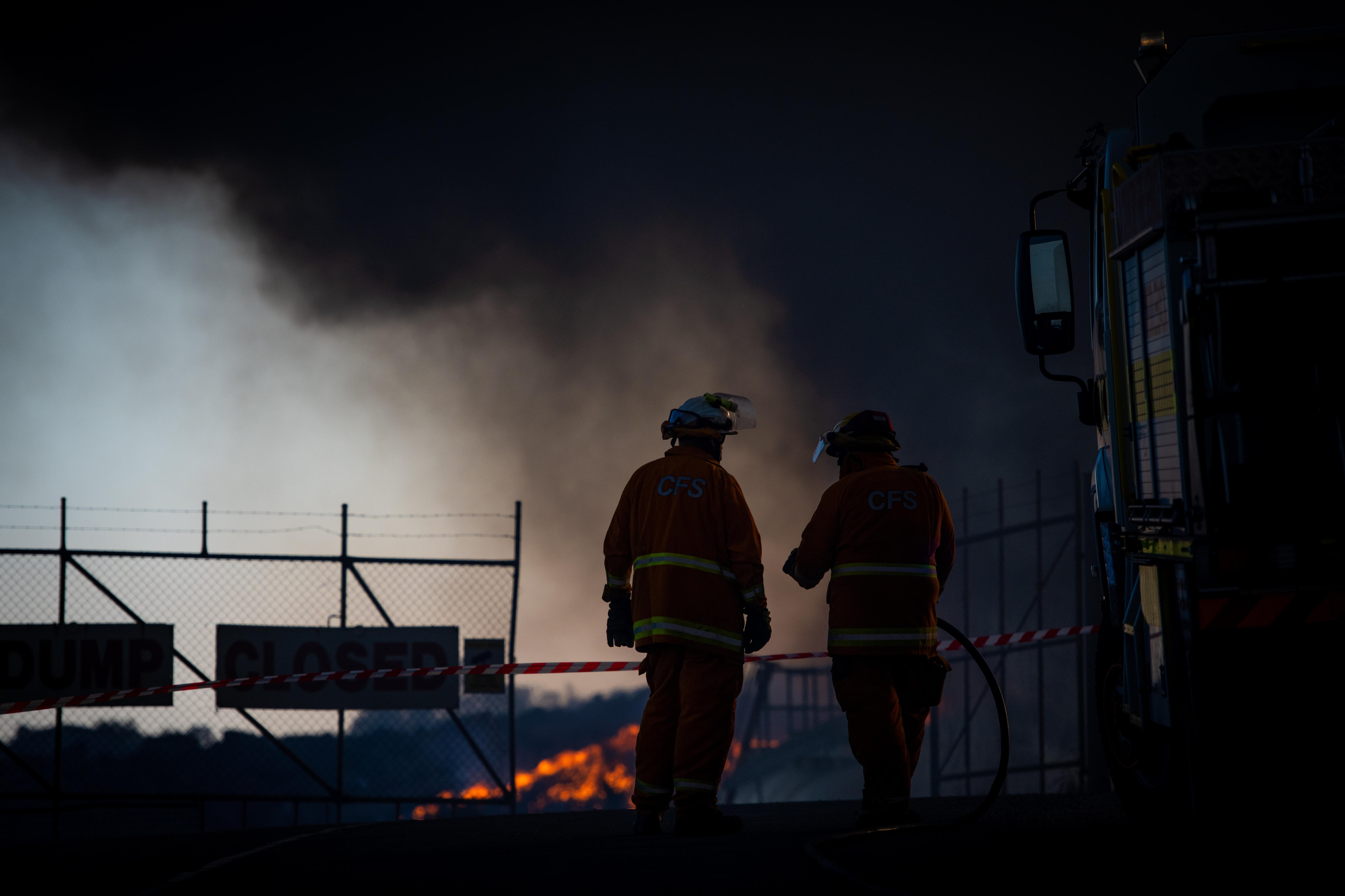 Crews continue to battle hotspots on the 143-hectare fireground, as well as a fire at the local dump that is causing potentially hazardous smoke to drift across the area.