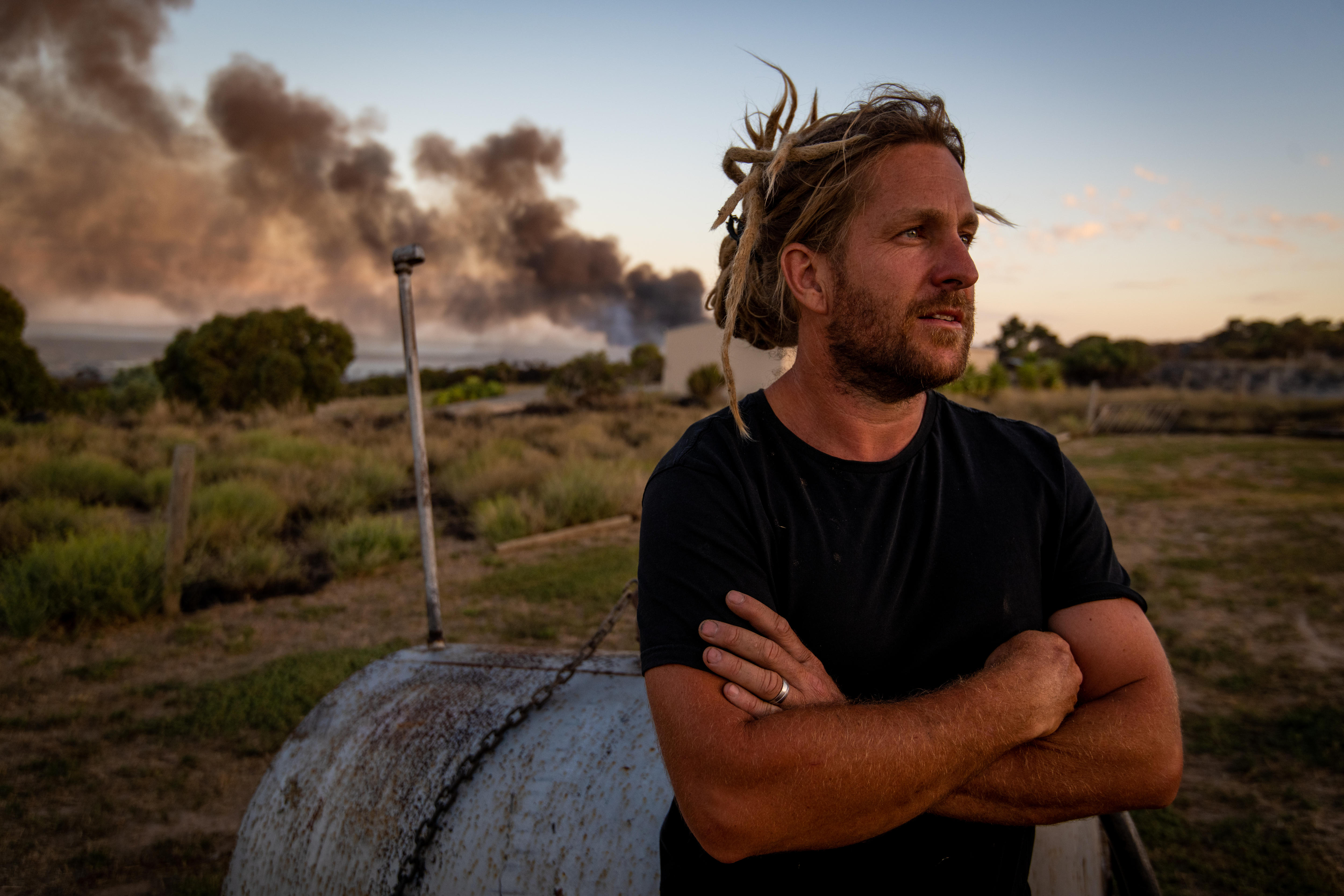 He rushed home and managed to grab his dogs and motorcycle and left before the fire took hold of his property.