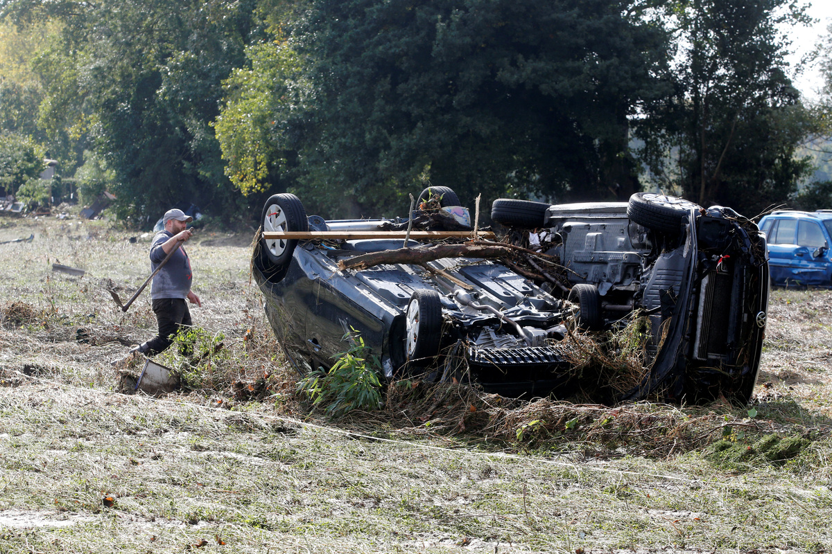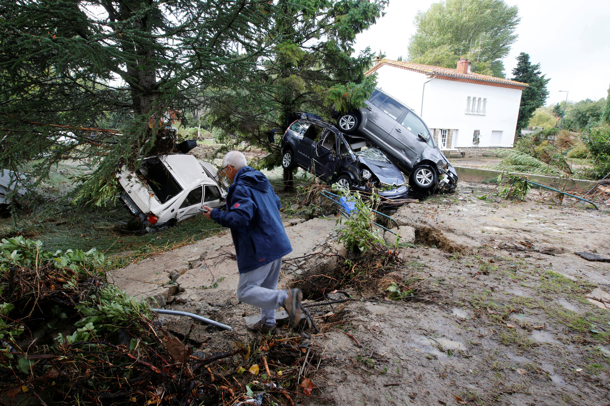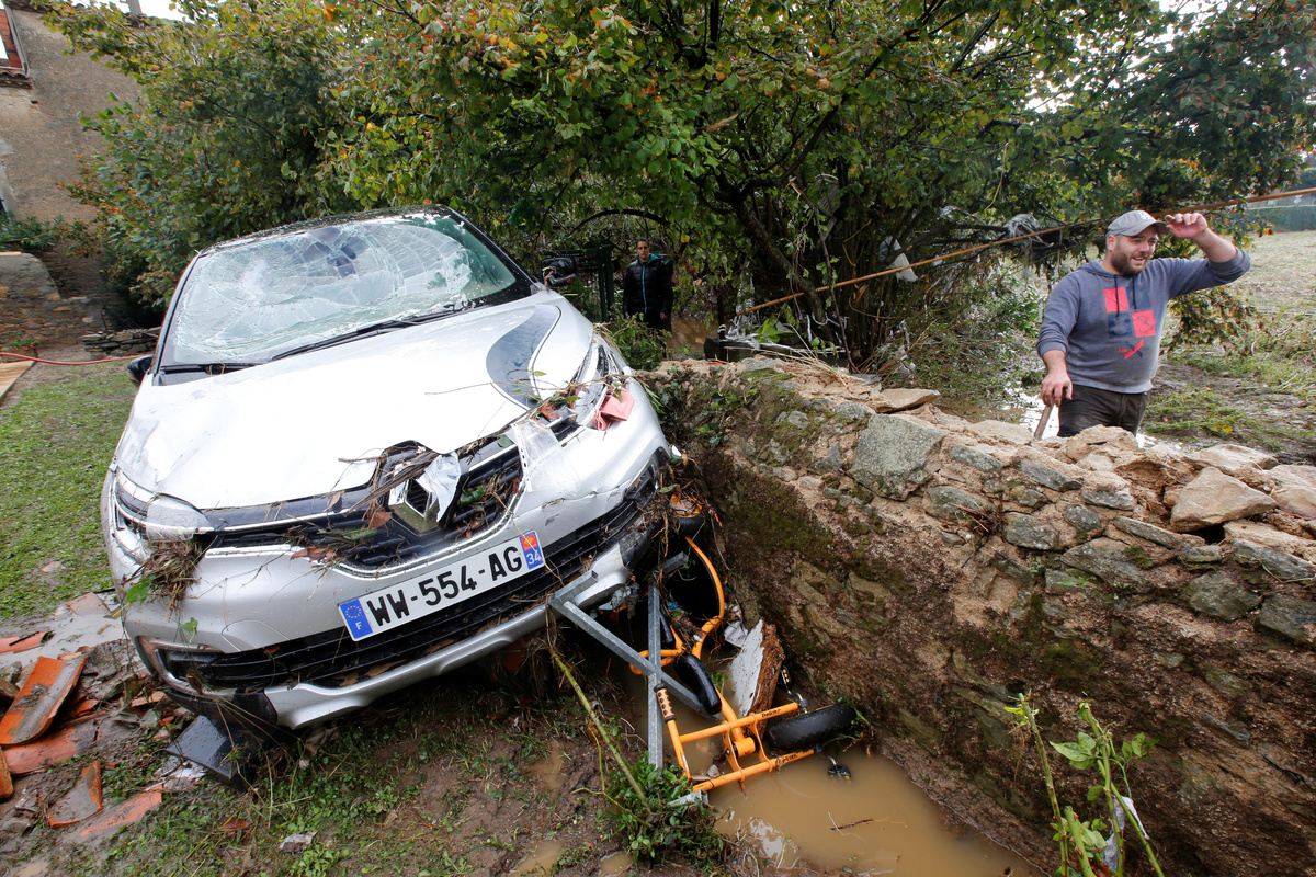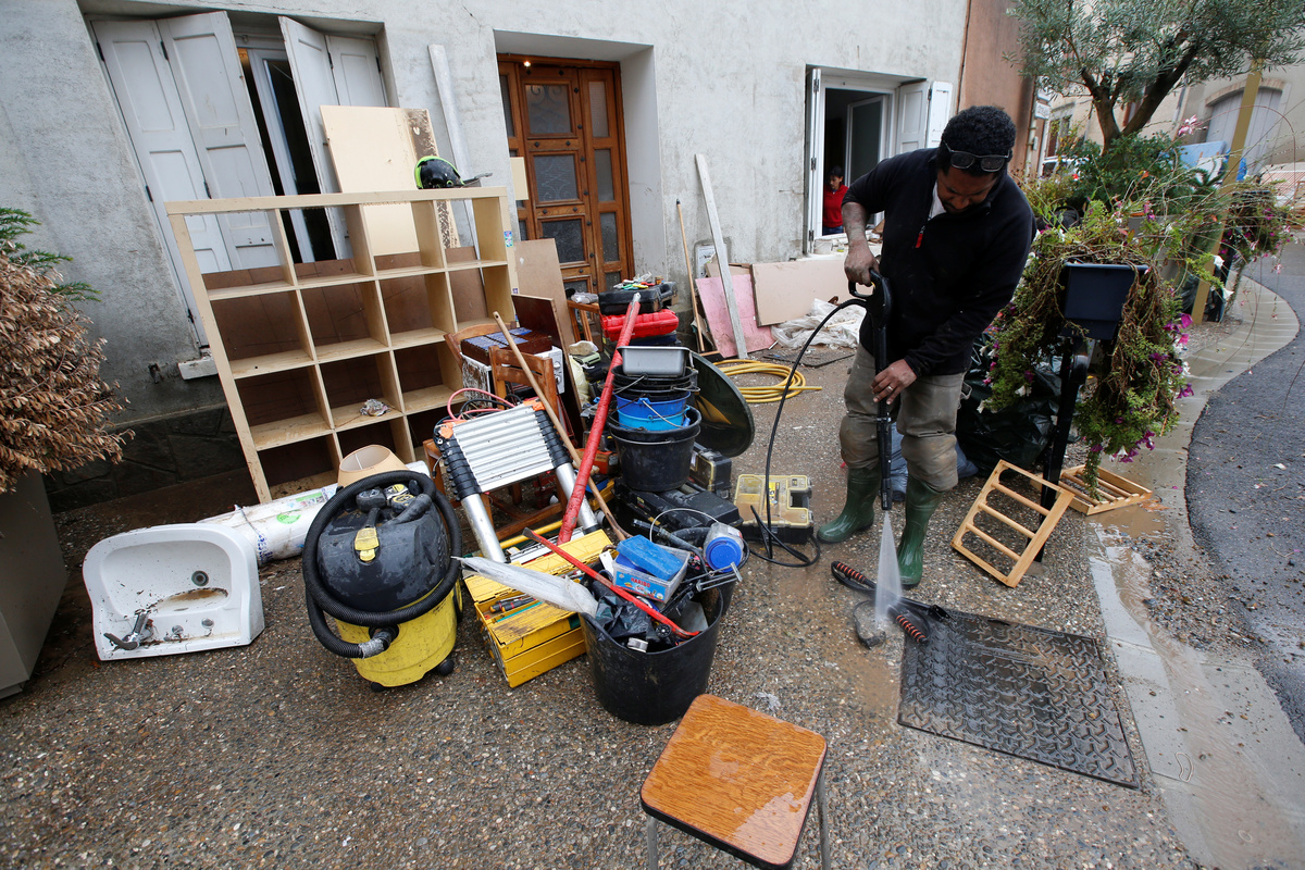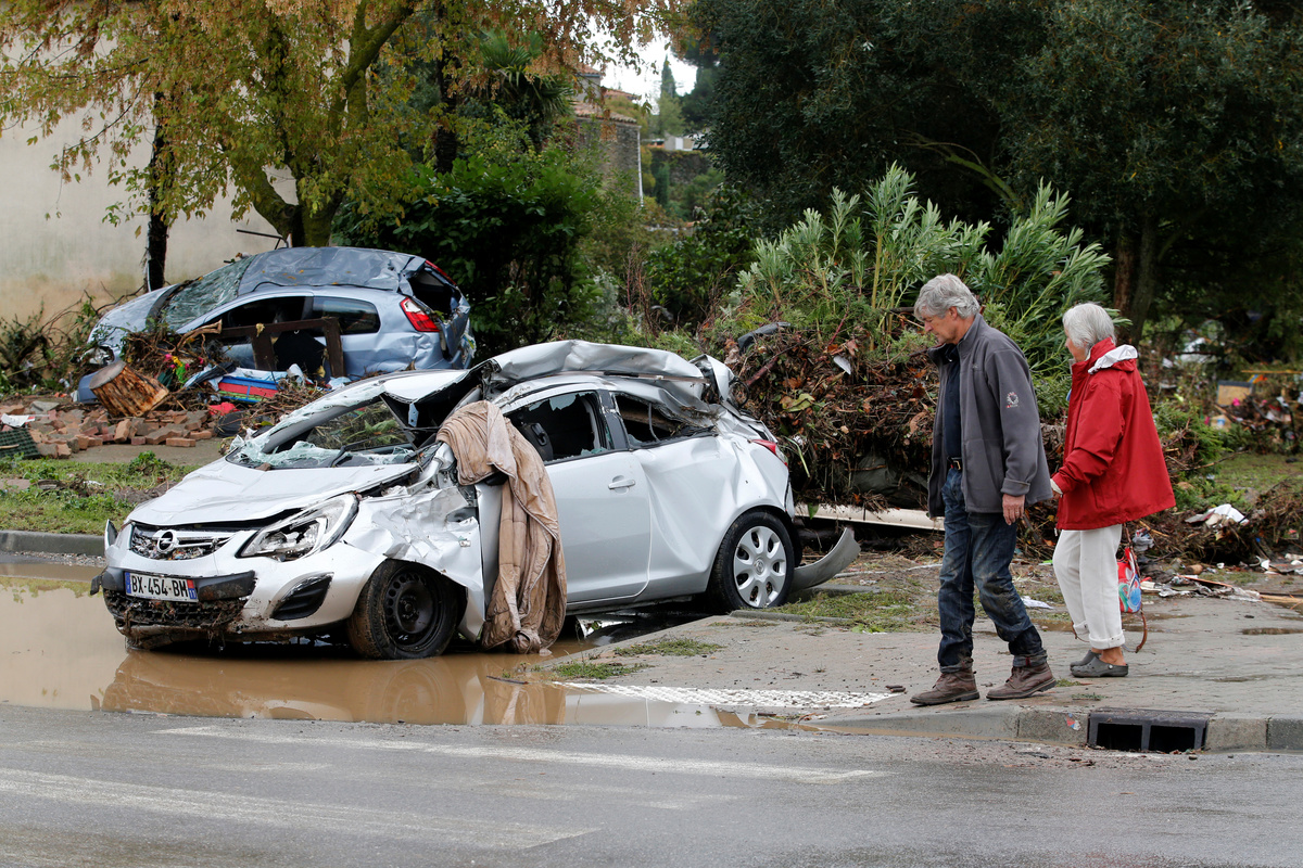 A man stands by a damaged car as clean-up operations continue the day after some of the worst flash floods in a century turned rivers into raging torrents that engulfed homes and swept away cars hit the southwestern Aude district of France, in Conques, France, October 16, 2018. REUTERS/Jean-Paul PelissierA man stands by a damaged car as clean-up operations continue the day after some of the worst flash floods in a century turned rivers into raging torrents that engulfed homes and swept away cars hit the southwestern Aude district of France, in Conques, France, October 16, 2018. REUTERS/Jean-Paul PelissierGeneral view shows a damaged car near a swimming pool as clean-up operations continue the day after some of the worst flash floods in a century turned rivers into raging torrents that engulfed homes and swept away cars hit the southwestern Aude district of France, in Conques, France, October 16, 2018. REUTERS/Jean-Paul PelissierPeople use shovels and brooms to clean away mud as clean-up operations continue the day after some of the worst flash floods in a century turned rivers into raging torrents that engulfed homes and swept away cars hit the southwestern Aude district of France, in Conques, France, October 16, 2018. REUTERS/Jean-Paul PelissierA man walks near damaged cars as clean-up operations continue the day after some of the worst flash floods in a century turned rivers into raging torrents that engulfed homes and swept away cars hit the southwestern Aude district of France, in Conques, France, October 16, 2018. REUTERS/Jean-Paul PelissierDebris is gathered as clean-up operations continue the day after some of the worst flash floods in a century turned rivers into raging torrents that engulfed homes and swept away cars hit the southwestern Aude district of France, in Conques, France, October 16, 2018. REUTERS/Jean-Paul PelissierEmergency workers clear away mud as clean-up operations continue the day after some of the worst flash floods in a century turned rivers into raging torrents that engulfed homes and swept away cars hit the southwestern Aude district of France, in Conques, France, October 16, 2018. REUTERS/Jean-Paul PelissierA man uses a power hose to clear away mud as clean-up operations continue the day after some of the worst flash floods in a century turned rivers into raging torrents that engulfed homes and swept away cars hit the southwestern Aude district of France, in Conques, France, October 16, 2018. REUTERS/Jean-Paul PelissierA Red Cross worker removes debris as clean-up operations continue the day after some of the worst flash floods in a century turned rivers into raging torrents that engulfed homes and swept away cars hit the southwestern Aude district of France, in Conques, France, October 16, 2018. REUTERS/Jean-Paul PelissierDamaged cars are seen as clean-up operations continue the day after some of the worst flash floods in a century turned rivers into raging torrents that engulfed homes and swept away cars hit the southwestern Aude district of France, in Conques, France, October 16, 2018. REUTERS/Jean-Paul PelissierAn emergency vehicle makes its way along a flooded road the day after some of the worst flash floods in a century turned rivers into raging torrents that engulfed homes and swept away cars hit the southwestern Aude district of France, near Conques, France, October 16, 2018. REUTERS/Jean-Paul Pelissier